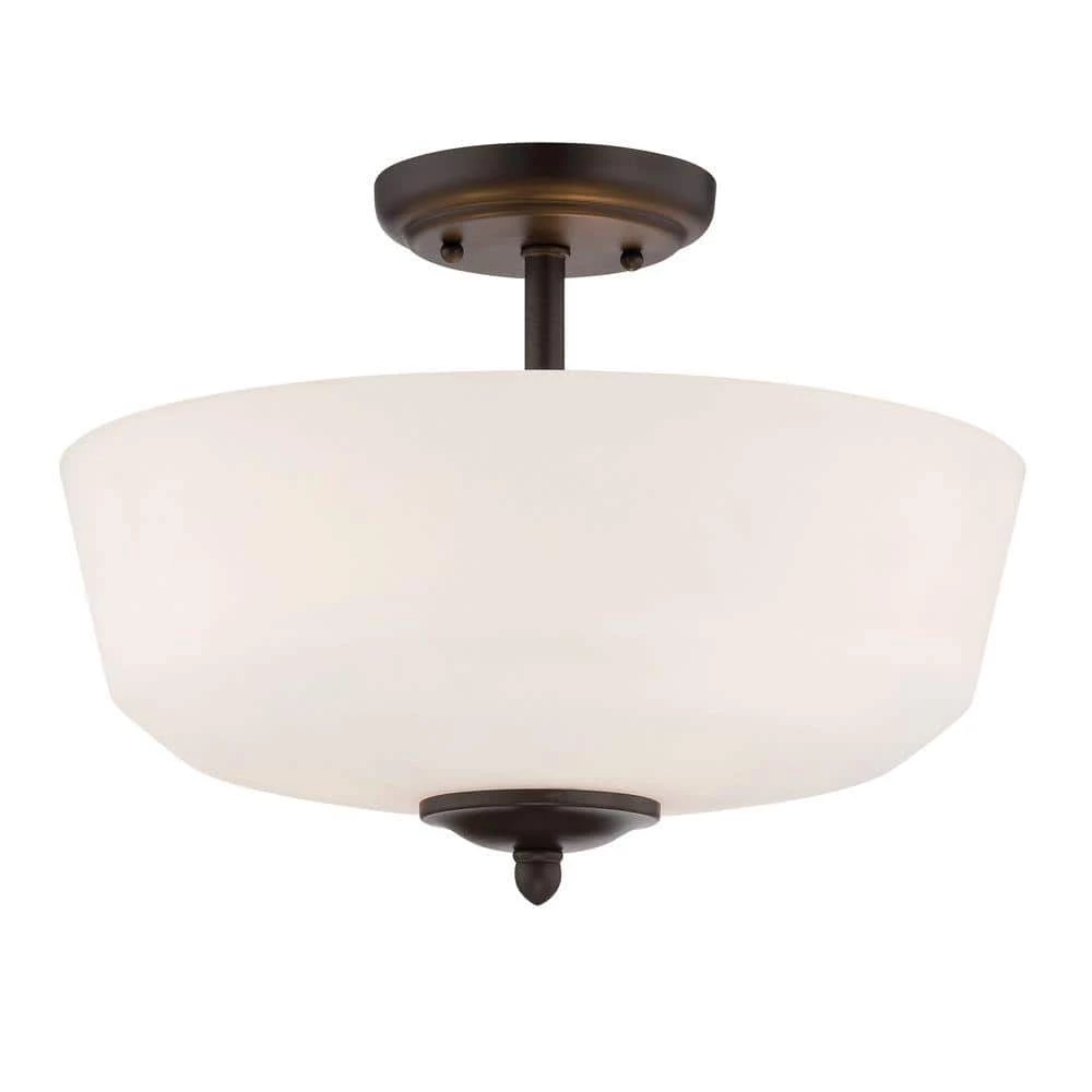 Darcy semi-flushmounts feature a clean design with sleek lines and a softly molded opal glass shade, adding a touch of sophistication and modern elegance. These fixtures are built with protective oil rubbed bronze finish over a steel construction to look great and last for years to come.