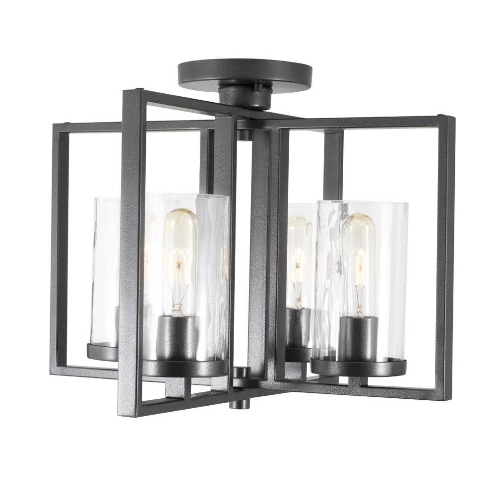 The Elements Collection comes in Charcoal with Rain glass. This Transitional Elements Semi-Flush will complement the decor in any room of your home. Made with solid steel construction to look great and last for years to come.