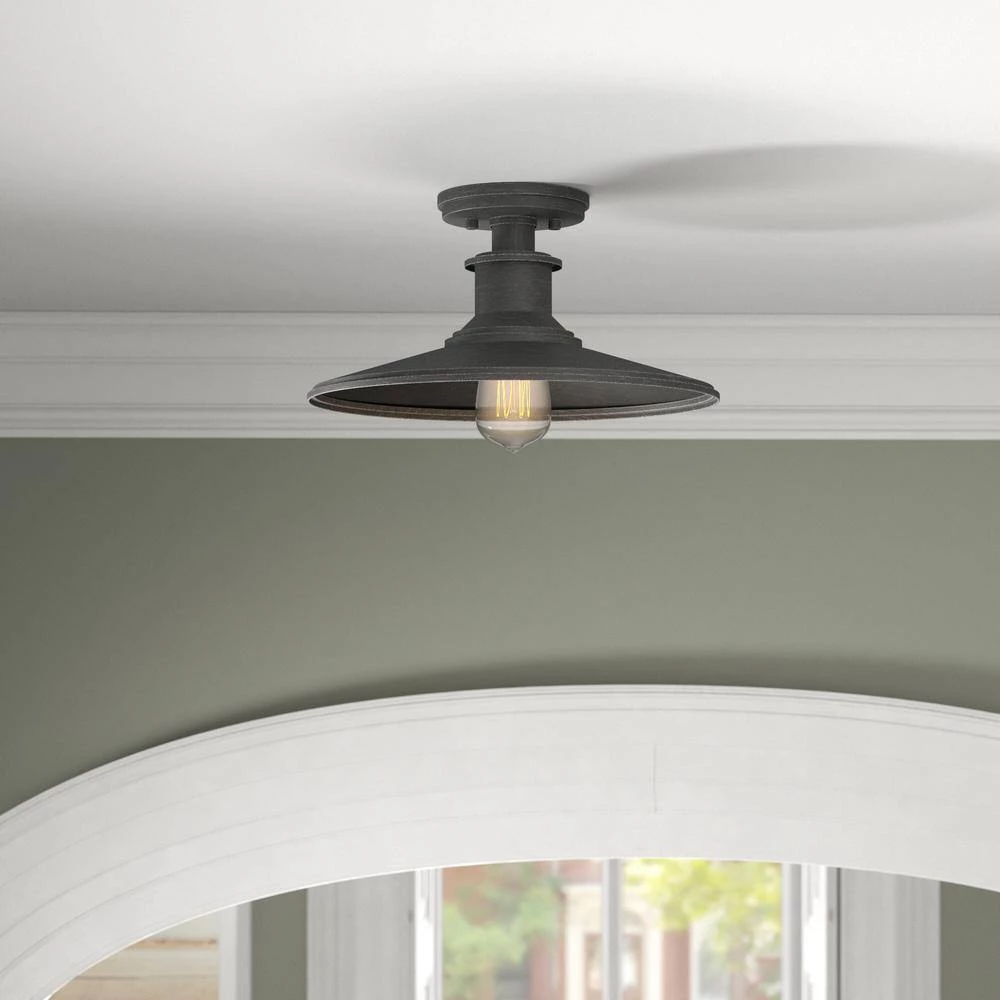 Rustic styling at it’s best, the Aurora features an updated metal shade in a distressed Weathered Pewter finish. Built for the exterior, but just as beautiful when used in the interior, the design is ideal for todays popular filament bulbs making it a perfect Modern Farmhouse or Coastal accent for any decor. It installs easily and requires 1 screw-base light bulb.