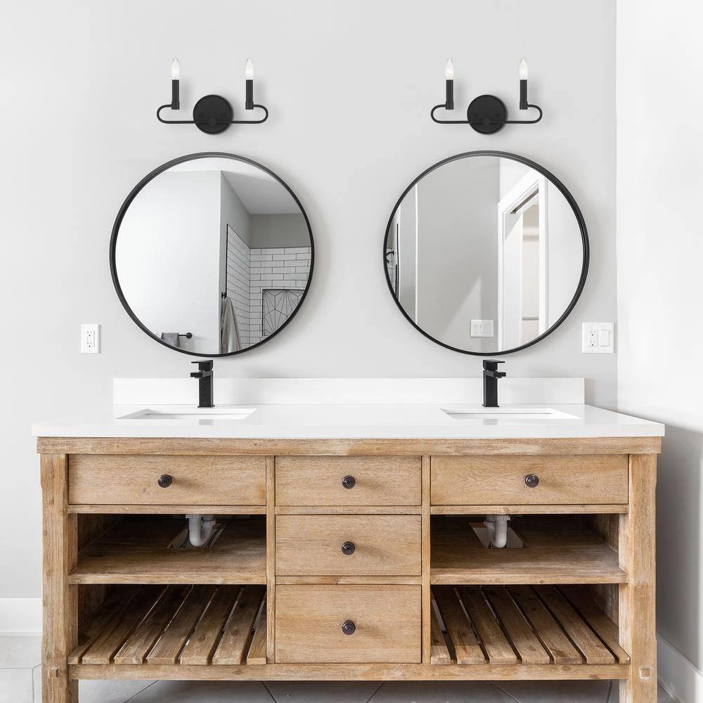 - Uses 2 candelabra-base 60-Watt max bulbs (not included)