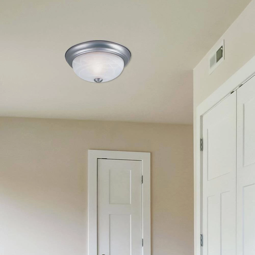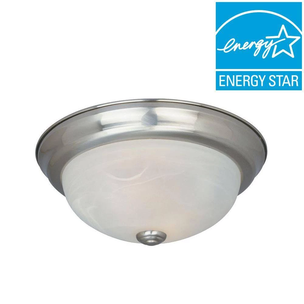 Shelley ceiling lights are specially designed with a simple, elegant style to complement the interior of any home. This fixture features a satin platinum finish. The alabaster glass adds a warm, welcoming diffuse to the light, and the center lock shade makes bulb replacement easy. The durable steel construction ensures that this ceiling light will continue to perform well and look great for years to come, and these ceiling lights install easily. They are Energy Star qualified and use CFL bulbs to help you save money on your electric bill.