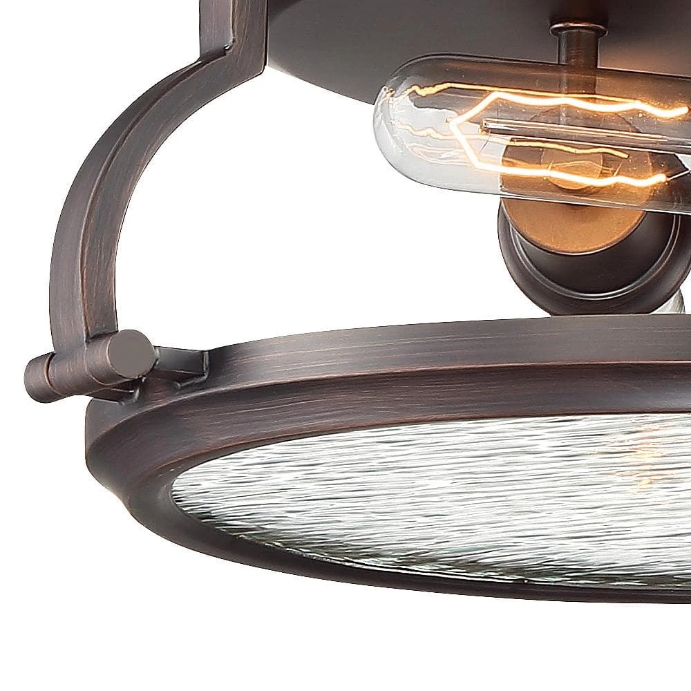 An ideal pairing of warmth and richness with a nod to the minimalist approach of the Industrial Era, the Eaton collection is a vintage industrial inspired look for today. With its satin copper bronze finish and unique style, this ceiling light will be the star of your room. The clear textured water glass shade highlights the bulbs and creates a unique pattern of light around the fixture. This ceiling light is designed for dining areas, nooks, sitting areas, living rooms, bedrooms, hallways, entryways.