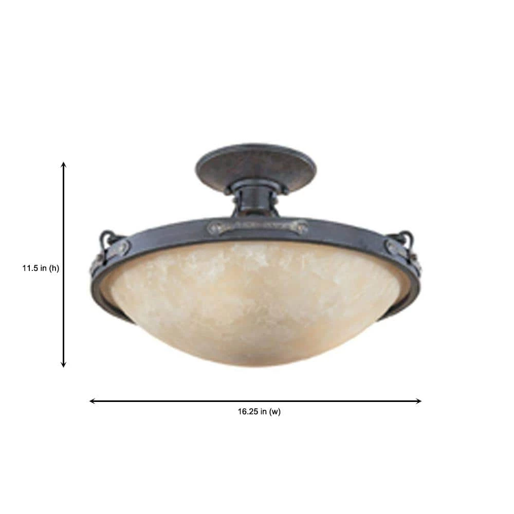 El Paso ceiling lights are specially designed with a unique style to complement the interior of any home. This collection features a weathered saddle finish and hand forged ironwork detailing that gives a rustic, Spanish look to the fixture. The satin crepe glass shade adds elegance and a warm, welcoming diffuse to the light. The durable steel construction ensures that this ceiling light will continue to perform well and look great for years to come. These ceiling lights install easily and use traditional incandescent bulbs.