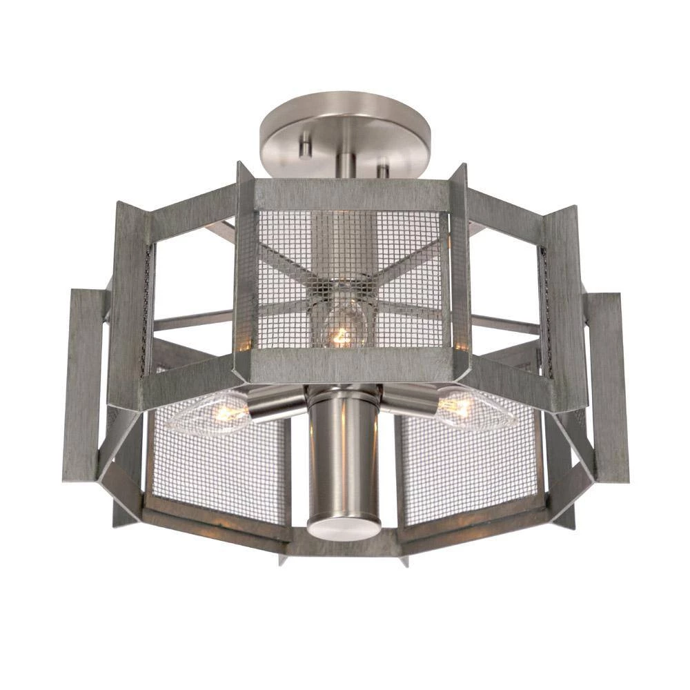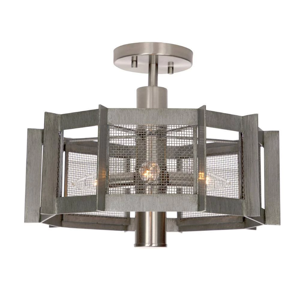 - Weathered Iron finish with steel mesh shade