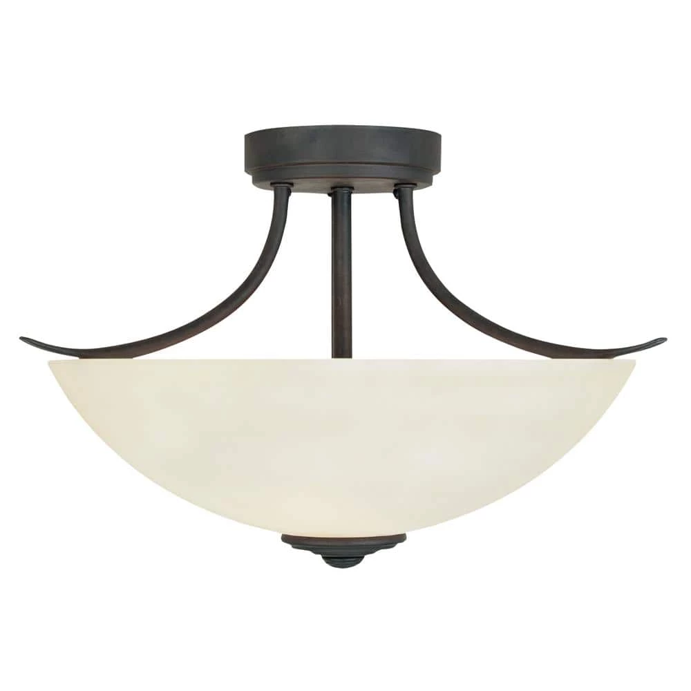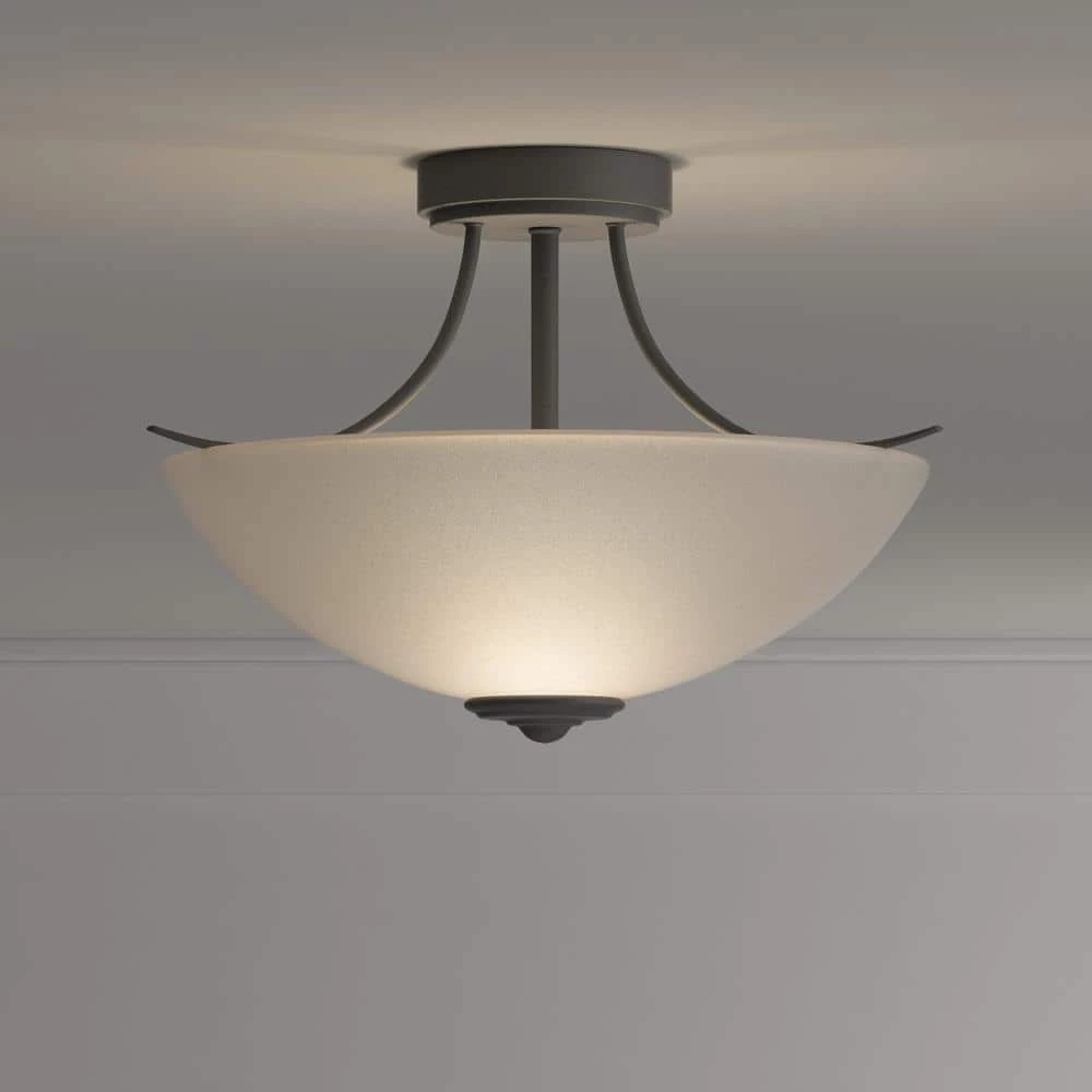 Montreal ceiling lights are specially designed with a unique style to complement the interior of any home. This collection features an oil rubbed bronze finish over smooth lines and a versatile design that blends with many styles of decor. The satin bisque glass shade adds elegance and a warm, welcoming diffuse to the light. The durable steel construction ensures that this ceiling light will continue to perform well and look great for years to come. These fixtures install easily and use traditional incandescent bulbs.