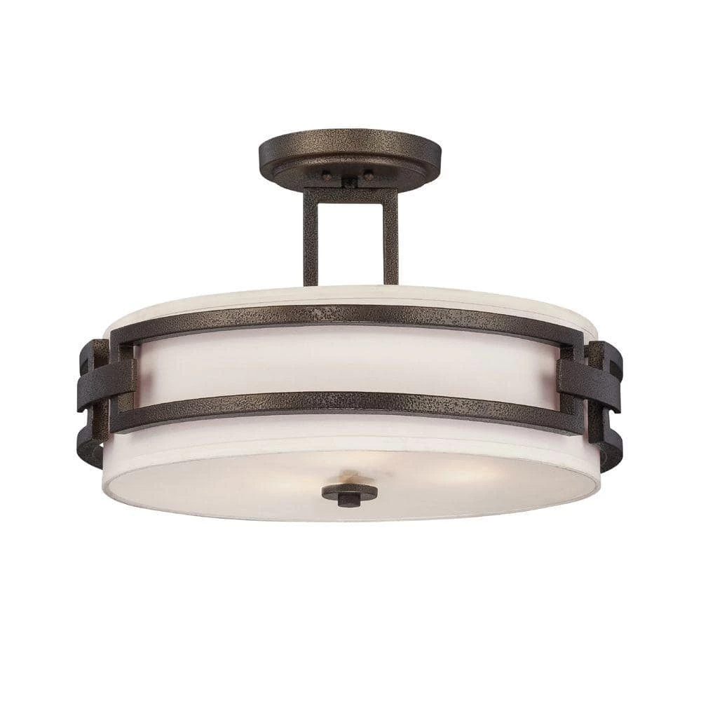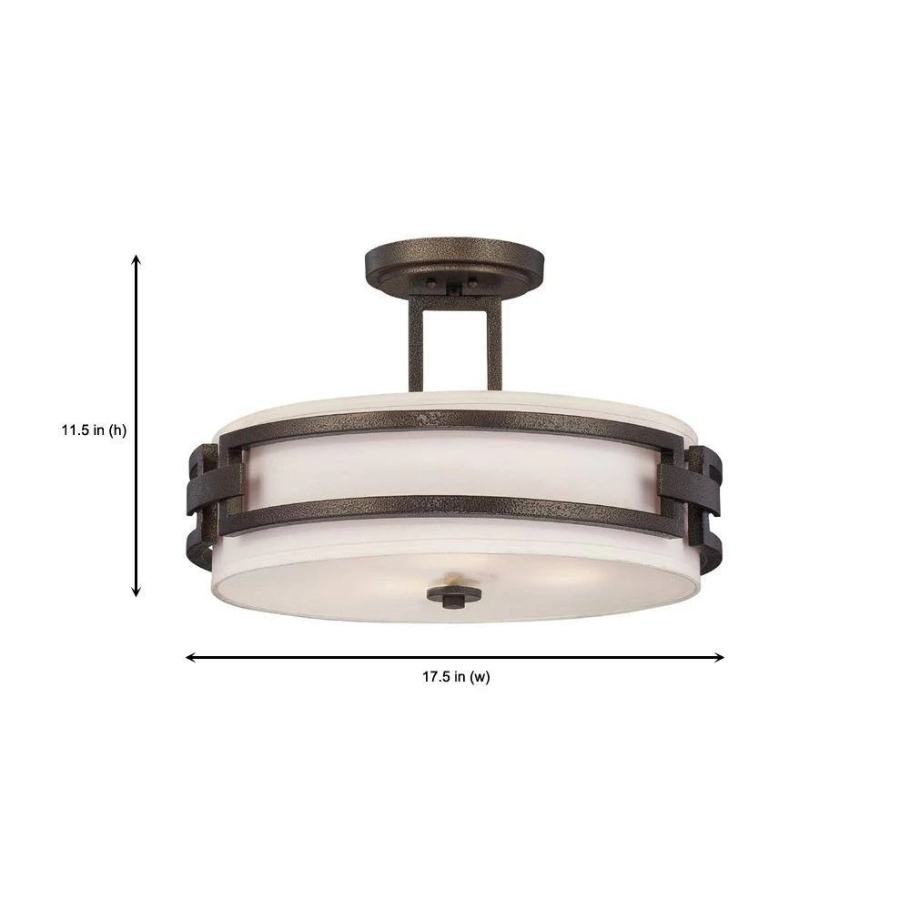 The Del Ray Collection comes in Flemish Bronze with White Fabric glass. This Transitional Del Ray Semi-Flush will complement the decor in any room of your home. Made with solid steel construction to look great and last for years to come.