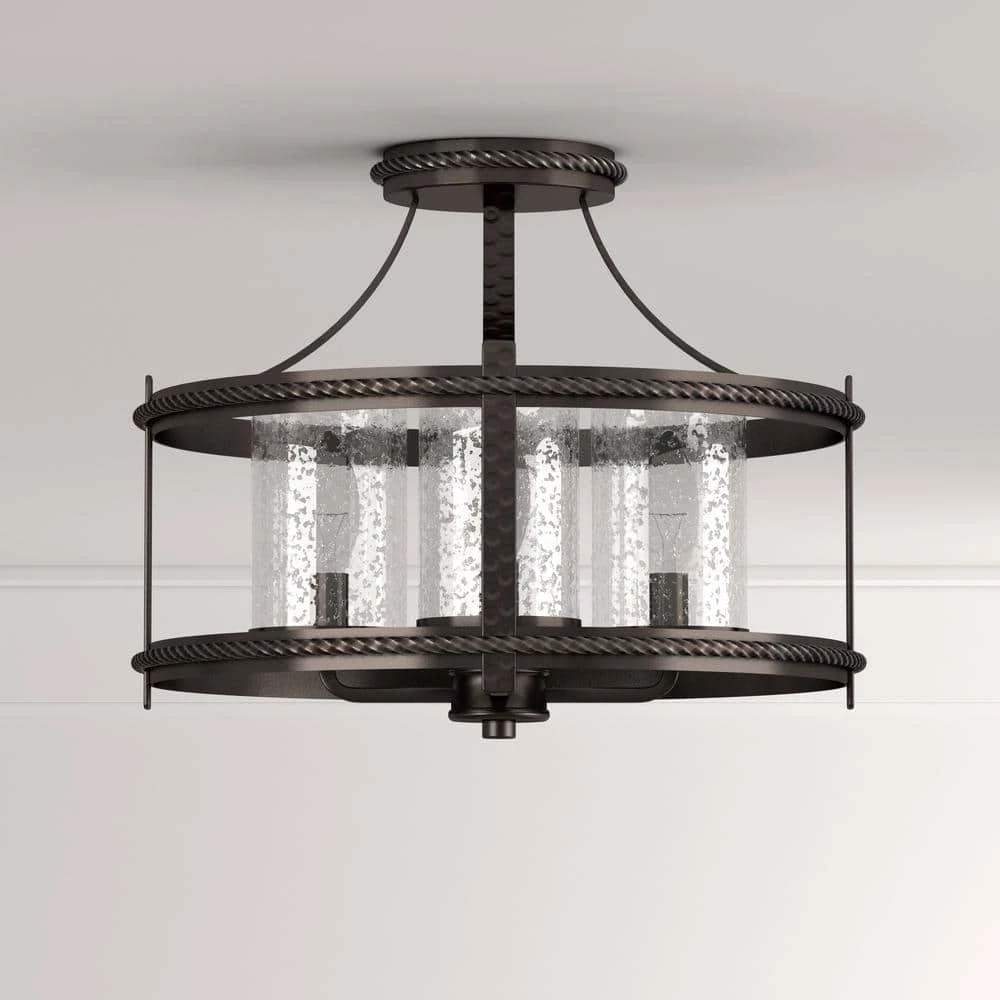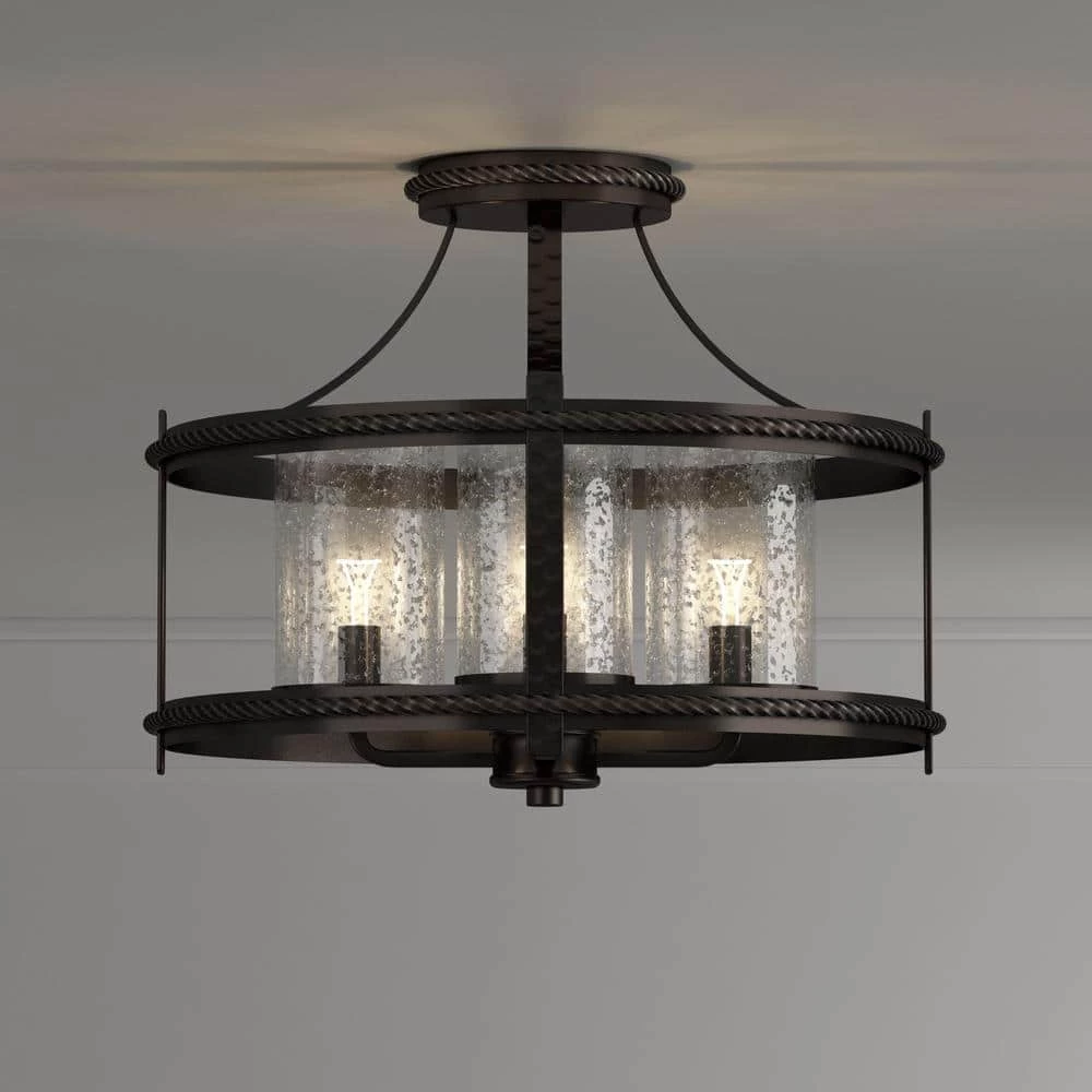 The Palencia Collection comes in Artisan Pardo Wash with Clear Seedy glass. This Traditional Palencia Semi-Flush/Pendant will complement the decor in any room of your home. Made with solid steel construction to look great and last for years to come.