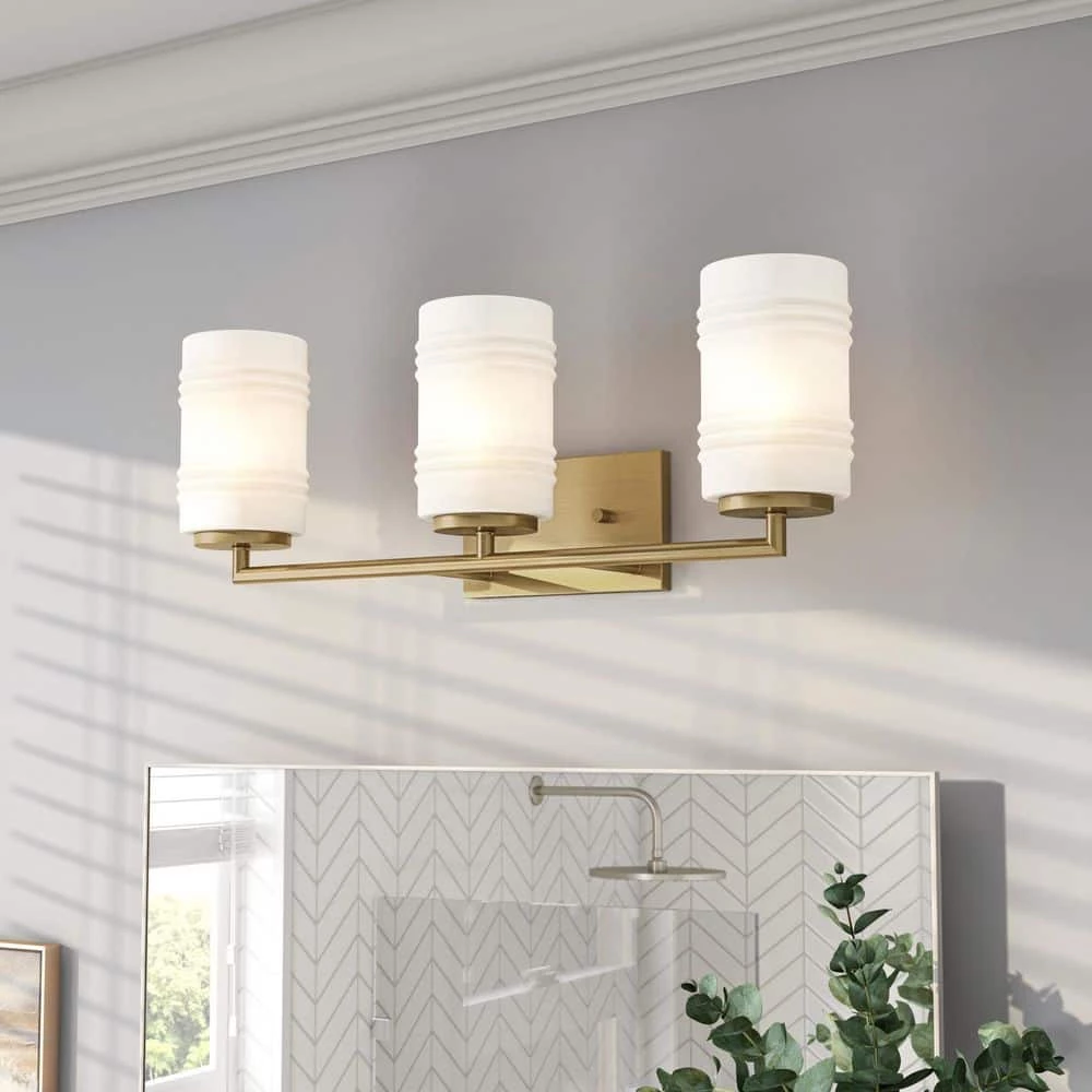 The Leavenworth bath and vanity collection combines Modern and Industrial touches with its simple shapes and ribbed Etched Opal Glass shades. Available in Matte Black and Brushed Gold, these fixtures will add visual interest and elegance to your home. Made from durable steel for years of enjoyment and illumination.
