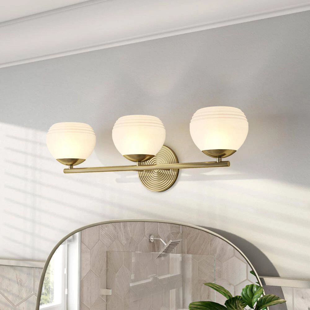 The Moon Breeze collection evokes Hollywood from the 40’s with its concentric circle design element and globe-shaped etched opal glass shades. Available in luxurious Brushed Gold or shiny Polished Nickel, these fixtures will add an element of glamor to any room. Made from durable steel for years of enjoyment and illumination.