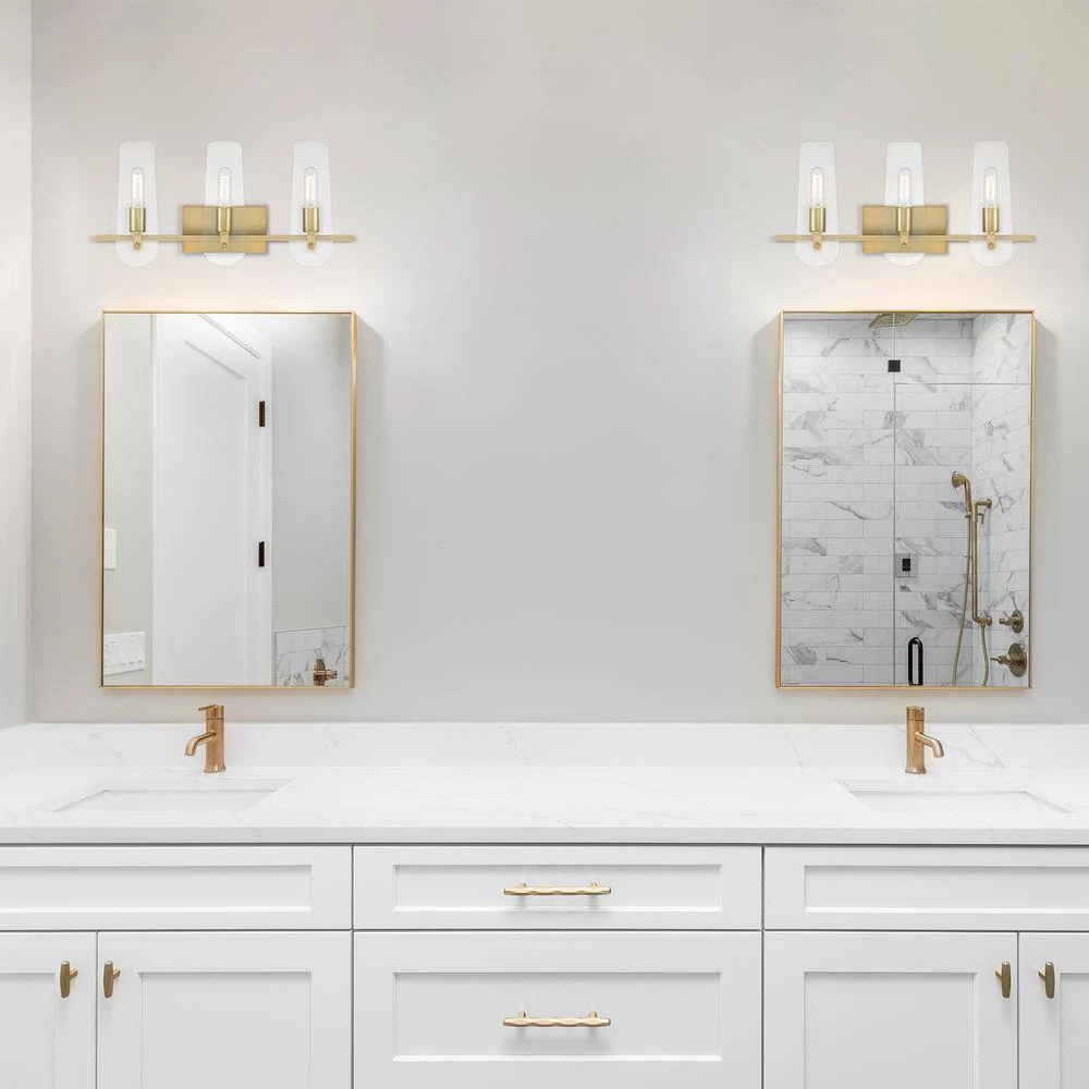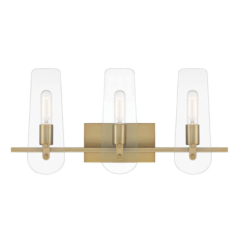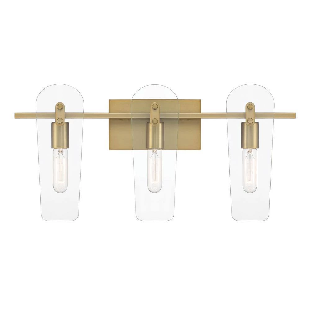 The unique flat Clear Glass shades, Brushed Gold finish, and simple lines create a harmonious balance between Traditional and Modern design sensibilities. The Bergen Beach collection culminates in the elegant and gilded cage of the 8-light chandelier. Made from durable steel for years of enjoyment and illumination.
