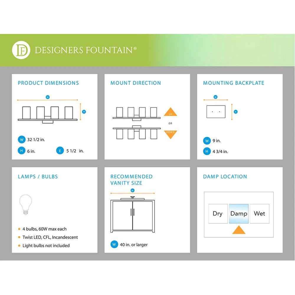 - 60-Watt maximum per bulb incandescent or LED, CFL equivalent