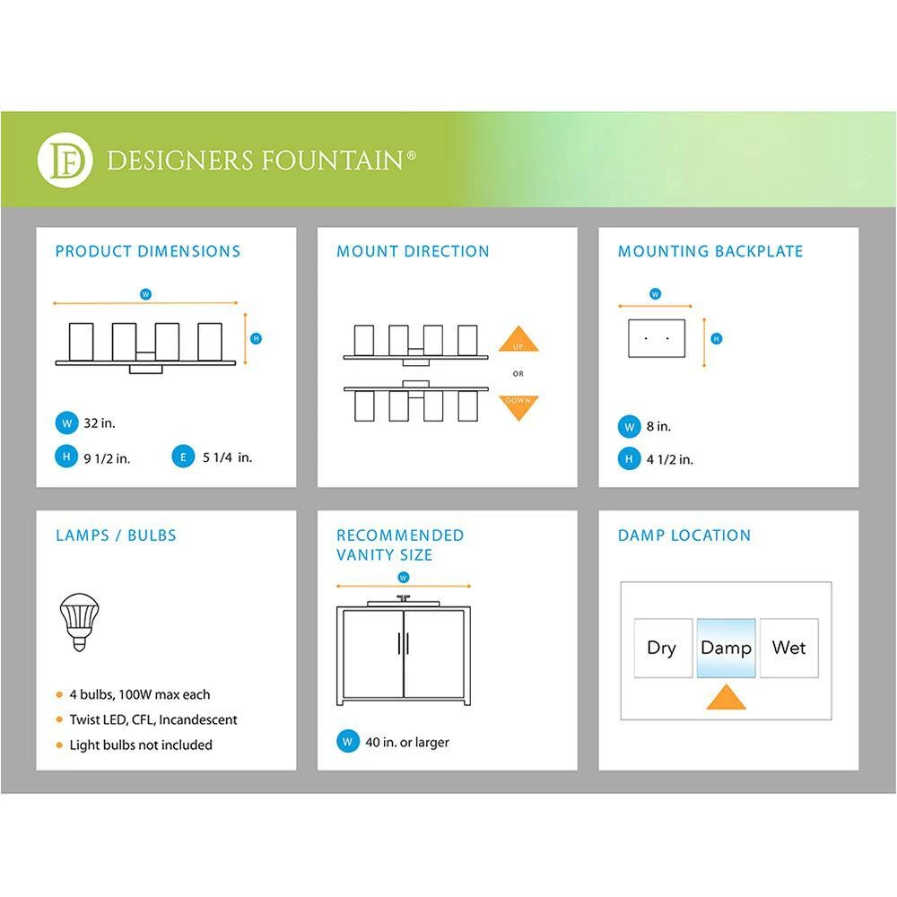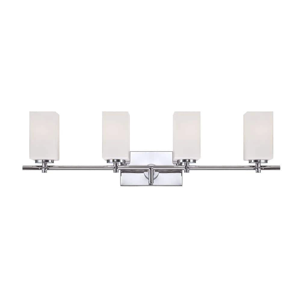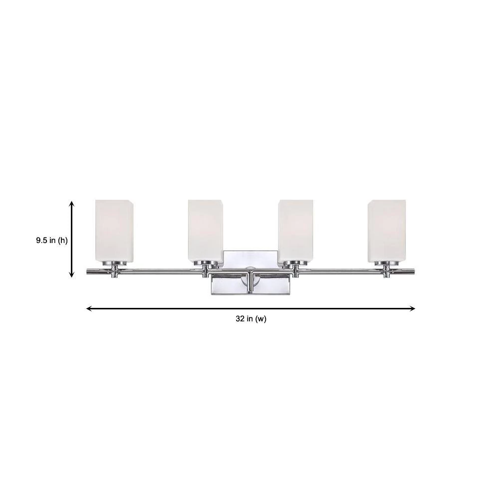 The Dakota Collection comes in Chrome with Frosted White Inside glass. This Transitional Dakota 4 Light Bath Bar will complement the decor in any room of your home. Made with solid steel construction to look great and last for years to come.