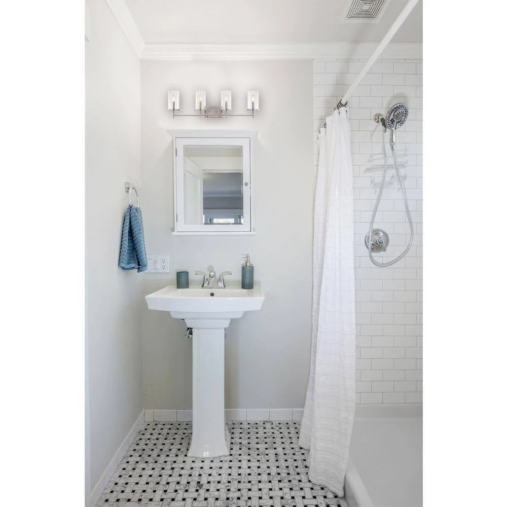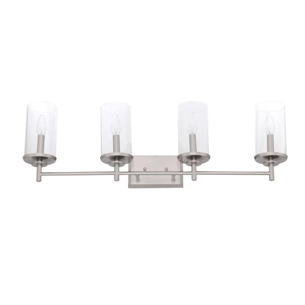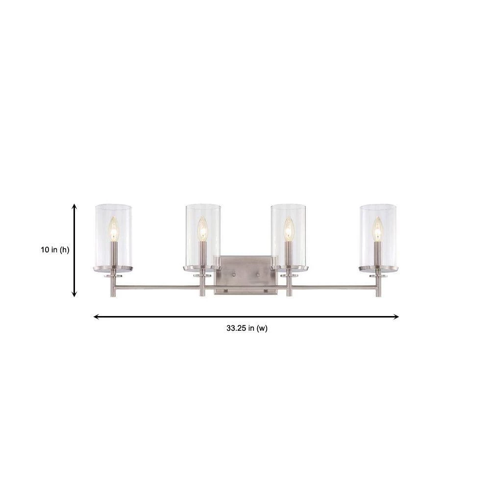 The Harlowe Collection comes in Satin Platinum with Clear glass. This Traditional Harlowe 4 Light Bath Bar will complement the decor in any room of your home. Made with solid steel construction to look great and last for years to come.