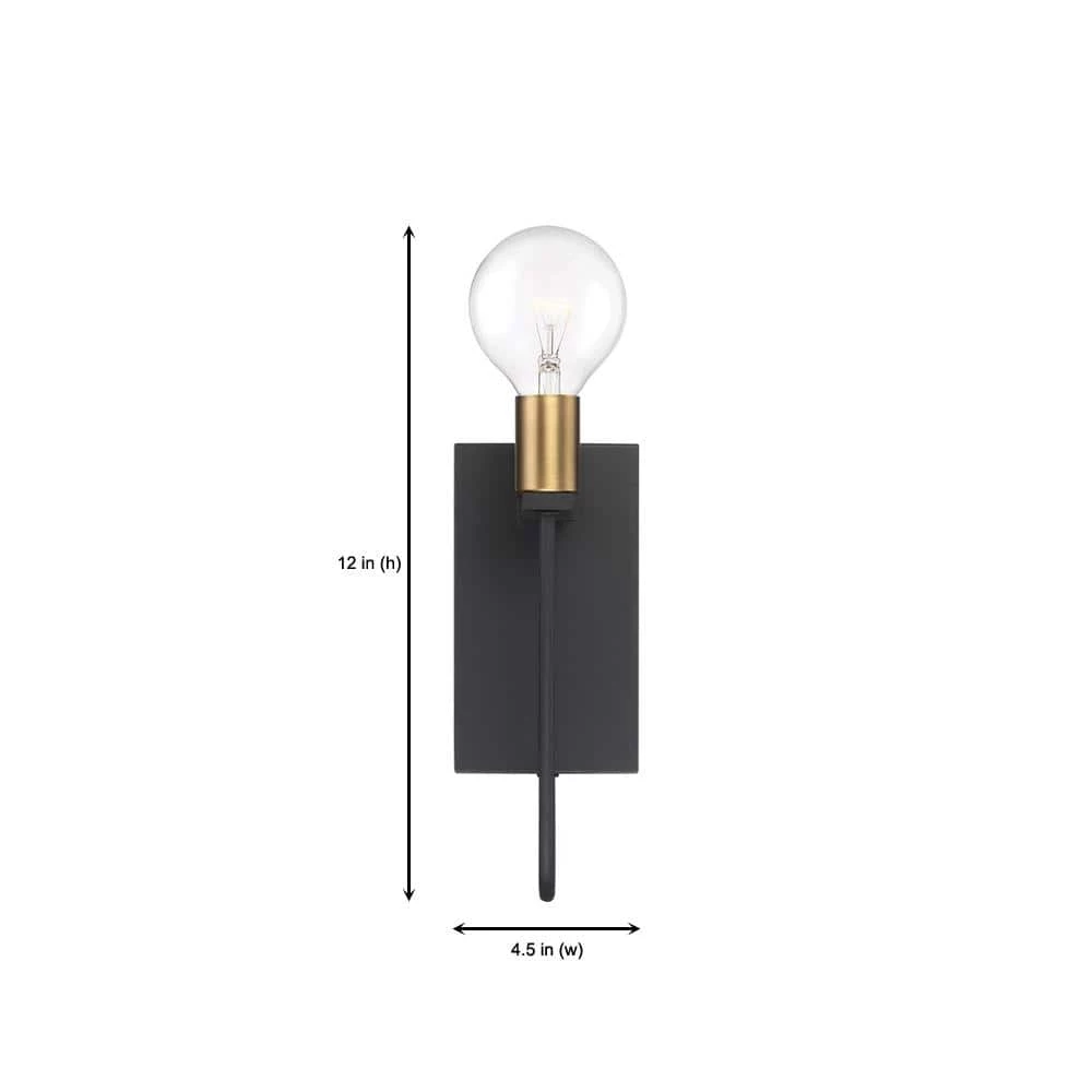 Finished in black and paired with old satin brass accents, Ravella combines modern industrial design with a touch of mid-century flair. This wall mounted light is designed for easy installation in damp locations such as bathrooms and vanity areas. It is quality built to last for years to come.
