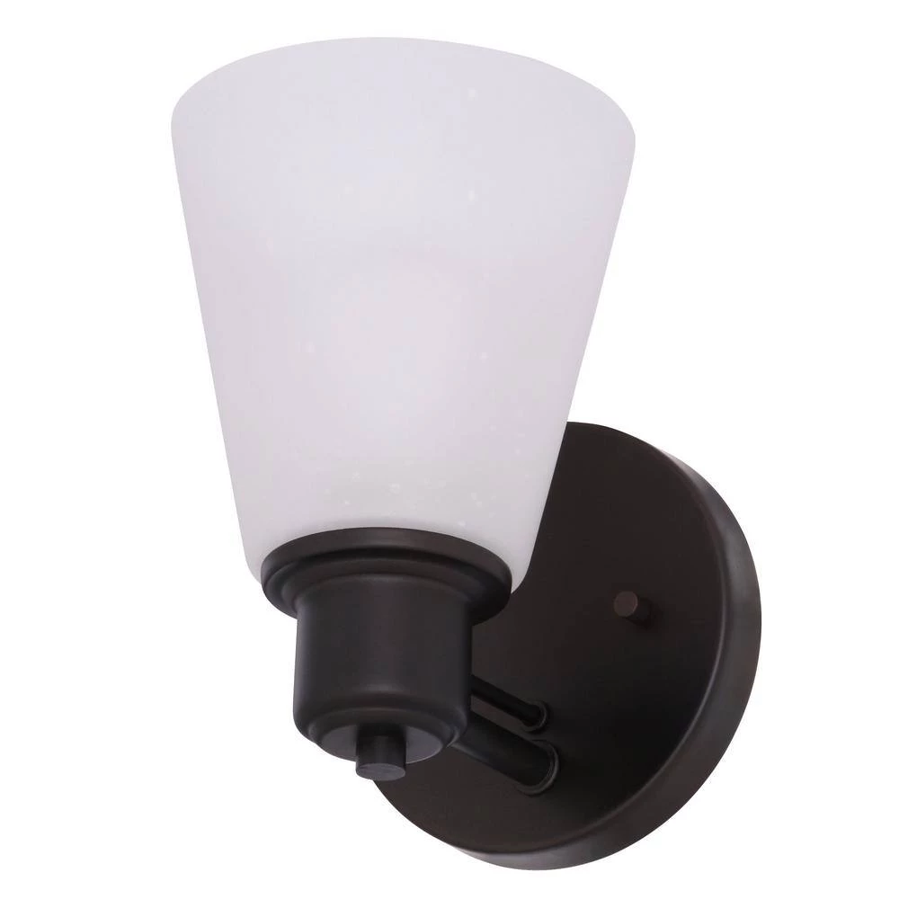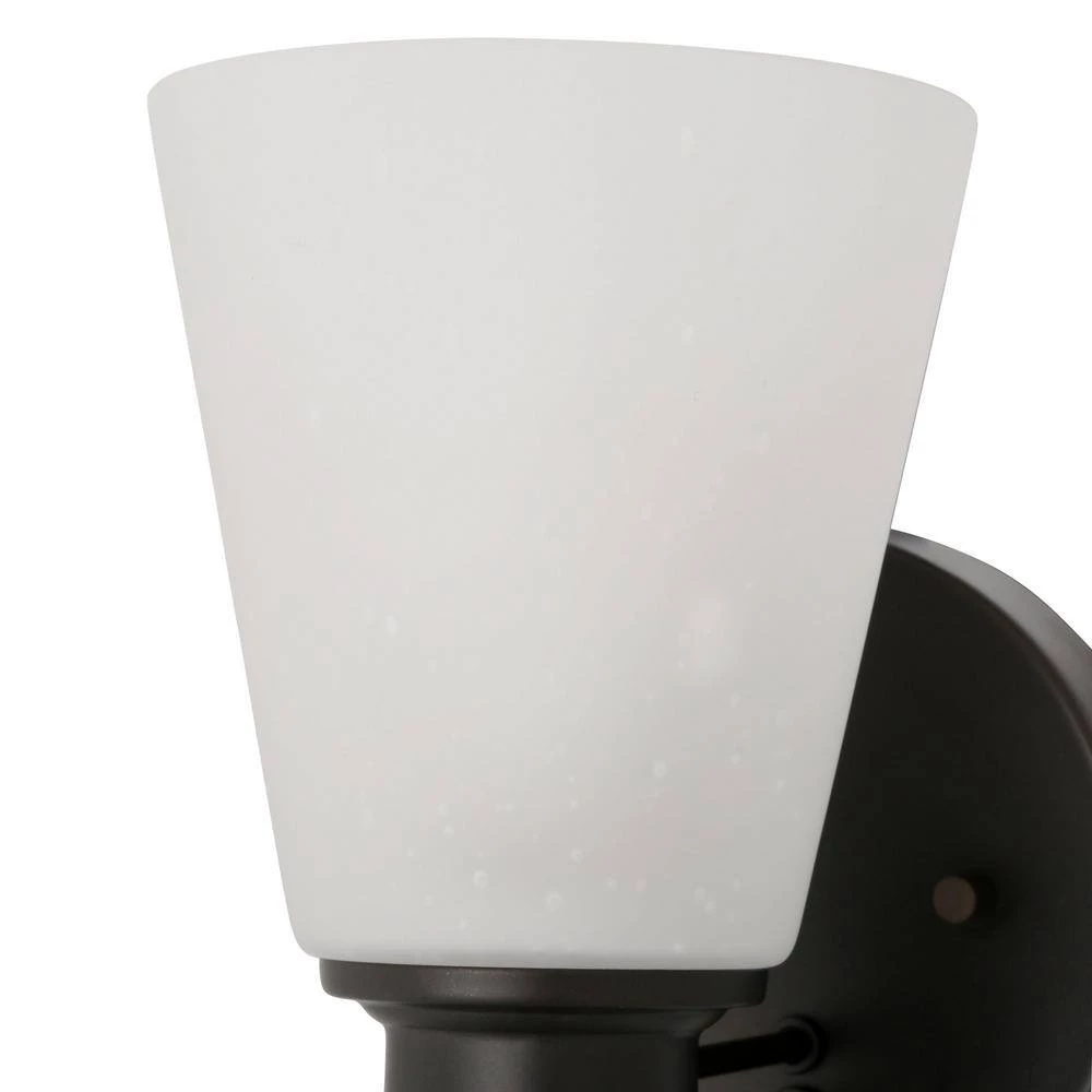 The Printers Row Collection comes in Oil Rubbed Bronze with Etched Seedy glass. This Transitional Printers Row Wall Sconce will complement the decor in any room of your home. Made with solid steel construction to look great and last for years to come.