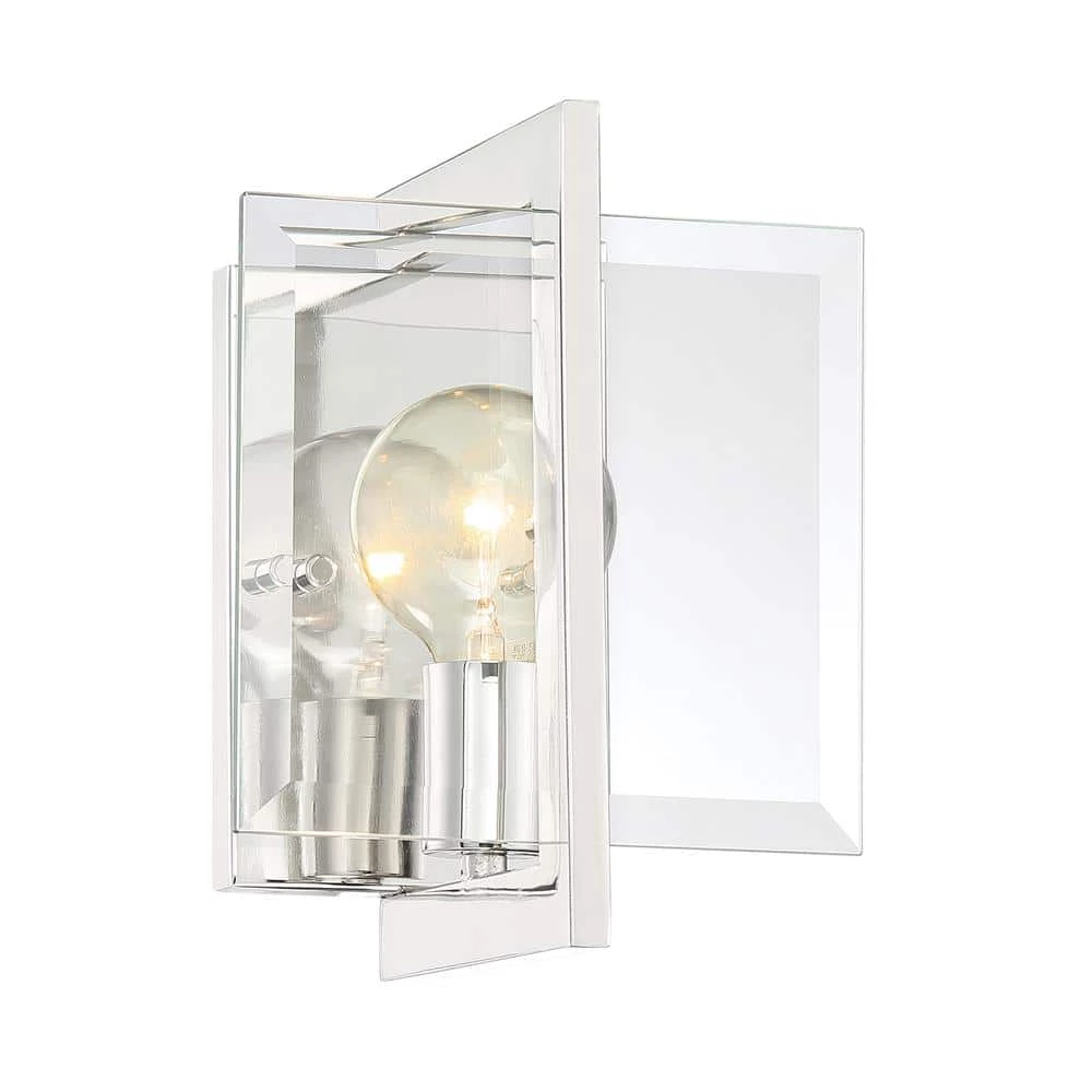 A simple frame finished in Polished Nickel suspending clear beveled glass panels. Ethan is a touch retro, a tad vintage, a dash modern and adds a subtle splash of excitement to your space. This wall mounted light is designed for easy installation in damp locations such as bathrooms and vanity areas. It is quality built to last for years to come.
