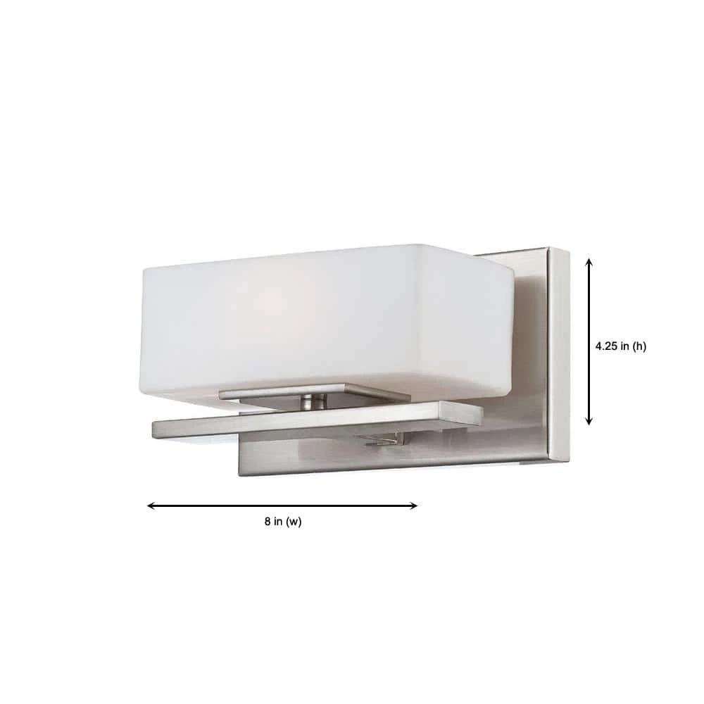 The Meridian Collection comes in Satin Platinum with Opal glass. This Contemporary Meridian Wall Sconce will complement the decor in any room of your home. Made with solid steel construction to look great and last for years to come.