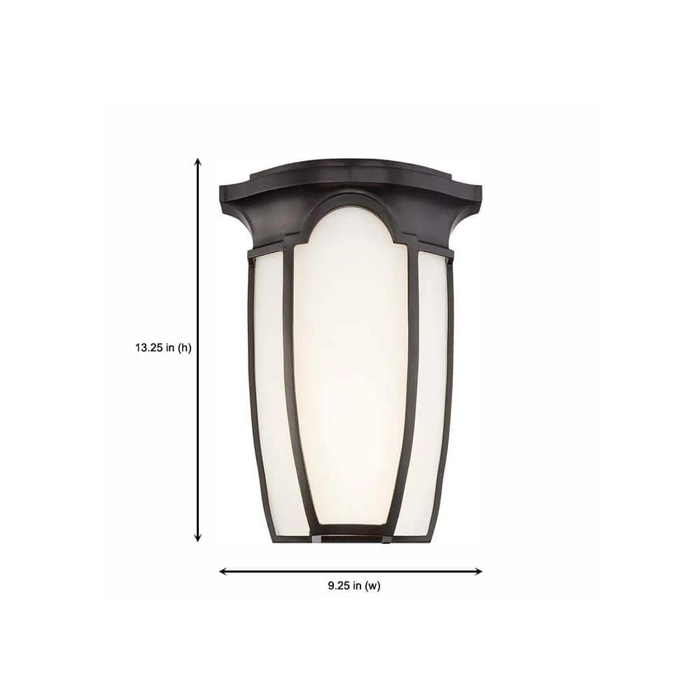 - Burnished bronze finish with opal glass shade