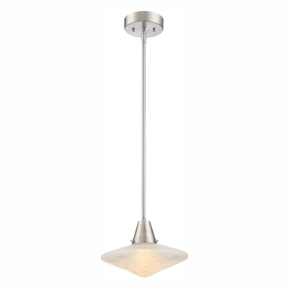 The Aida Collection comes in Chrome and Satin Platinum with clear and etched crackle glass shade. This Traditional indoor Mini Pendant will complement the decor in any room of your home. Made with solid steel construction to look great and last for years to come.