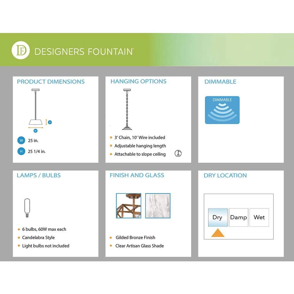 - Requires 6 candelabra based light bulbs – 60-Watt or less each (not included)