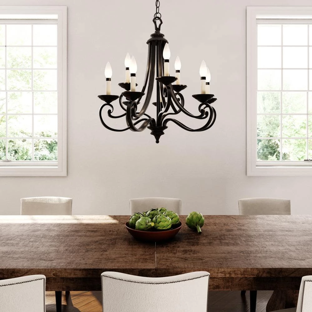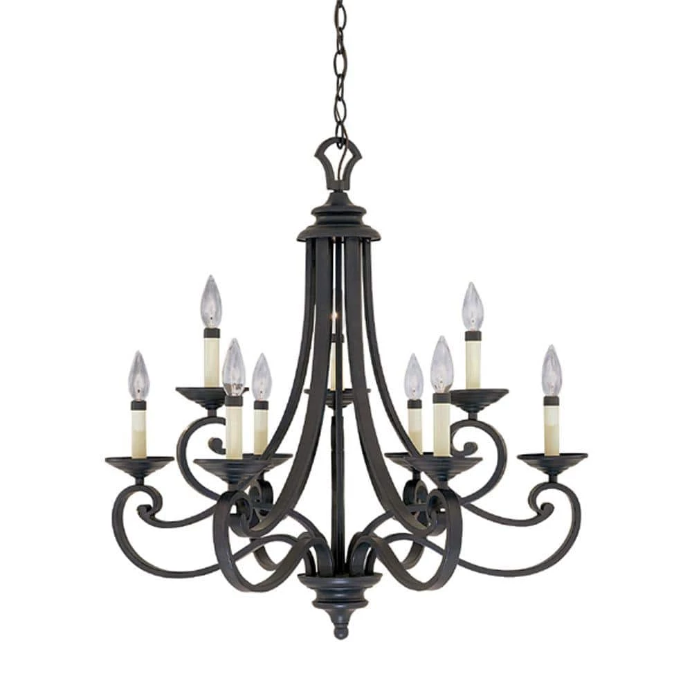 Featuring a natural iron finish over hand-forged ironwork with softly scrolled arms, the Monte Carlo 9-Light Natural Iron Chandelier from Designers Fountain gives new life to an Old World classic. Durable steel construction ensures that this chandelier will continue to perform well and look great for years to come. The elegant fixture installs easily and comes with a 3 ft. decorative chain to adjust the hanging length for your particular space.