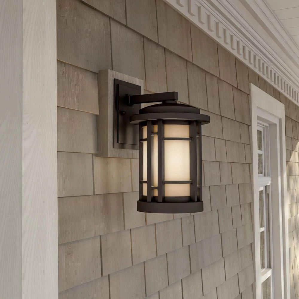 Barrister wall lanterns are a modern interpretation of Mission styling combined with energy efficient LED technology. These fixtures feature a protective burnished bronze finish and a white opal shade. They are built with steel to look great and last for years to come. The integrated LED light source uses 70% less electricity than traditional incandescent fixtures, and there are no bulbs to replace. They are easy to install and light instantly in cold weather.