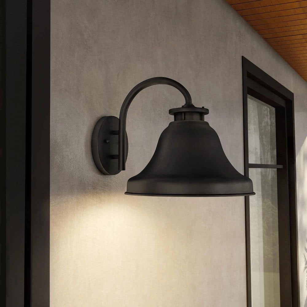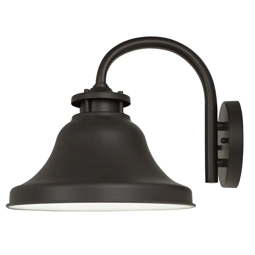 Keep your outdoor space well-lit with this Bayport 10.25-in. wall lamp. Perfect for your doorway or exterior walls, it focuses the light down while stopping unwanted glare from moving up and out. The gasket is made for wet locations for convenience. The bronze finish adds style, and weather-resistant steel housing with the waterproof seal makes it built to last.