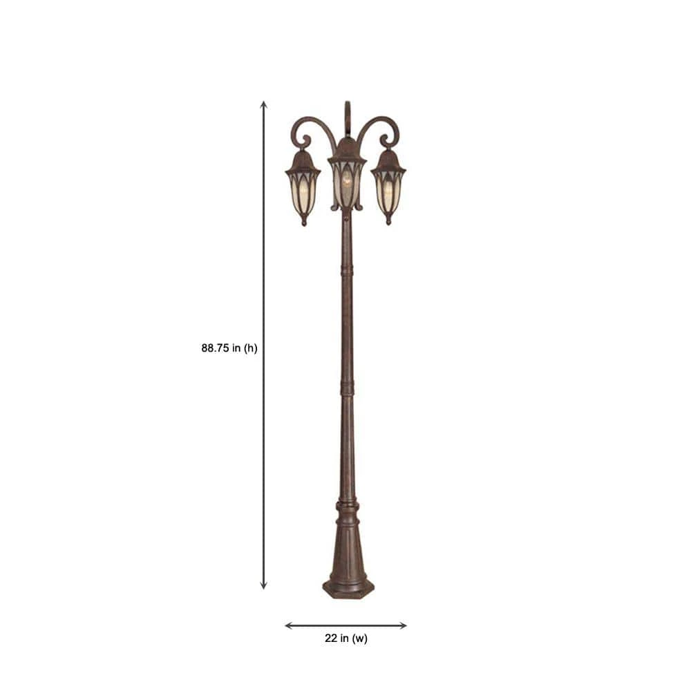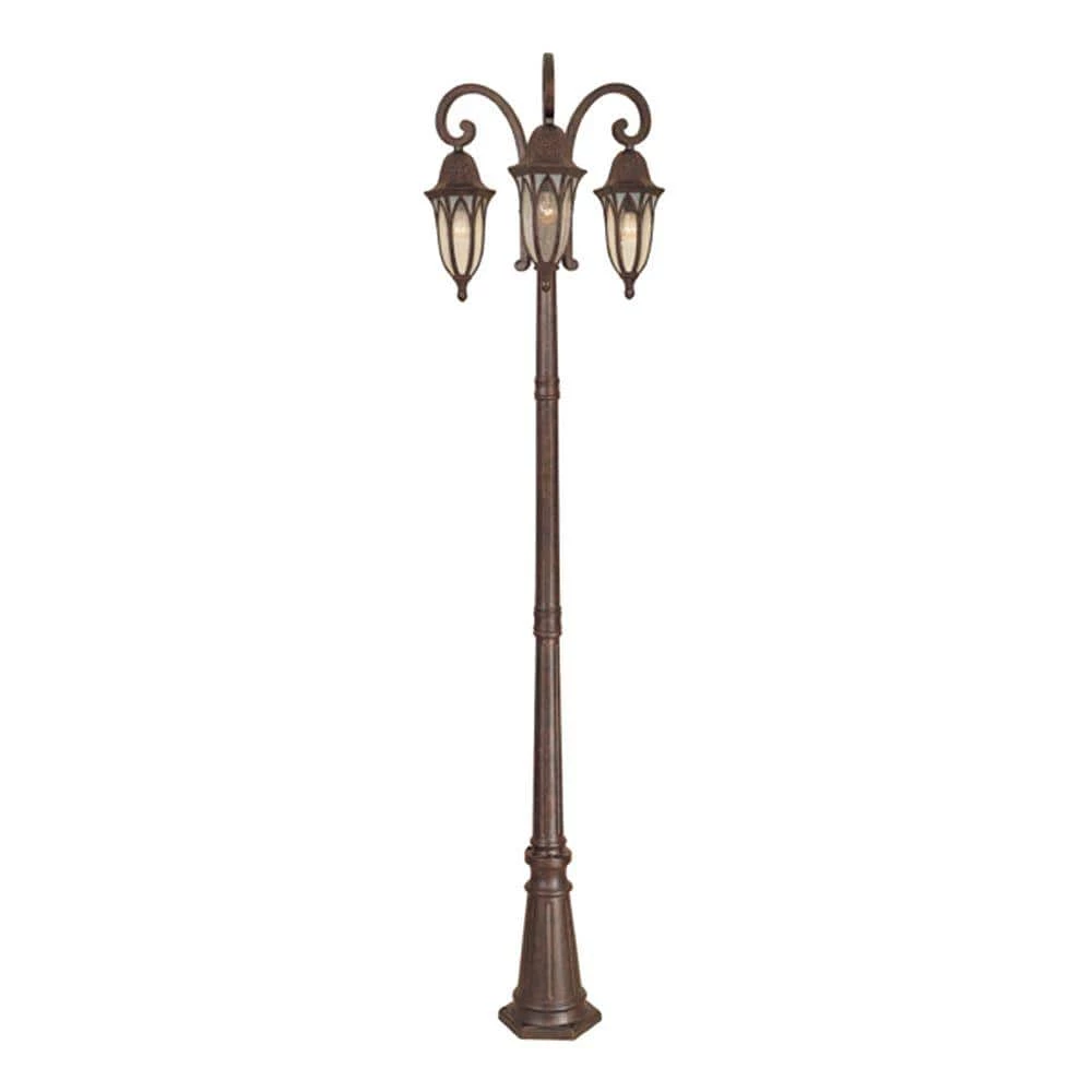 Charleston outdoor post lanterns are specially designed with a unique, lavish style that complements the exterior decor of any home. The burnished antique copper finish over distressed hammered detailing and vaulted arch style glass panels adds a rustic look to the fixture. The clear seedy glass panels and frosted seedy glass trim enhances the appearance and provides a warm glow from the light. The sturdy, weather resistant cast aluminum construction and waterproof seal protects the lantern from harsh outdoor elements to ensure the long life of the fixture. These outdoor post lanterns install easily and deliver welcoming, safe and reliable exterior lighting. Post included for easy installation.