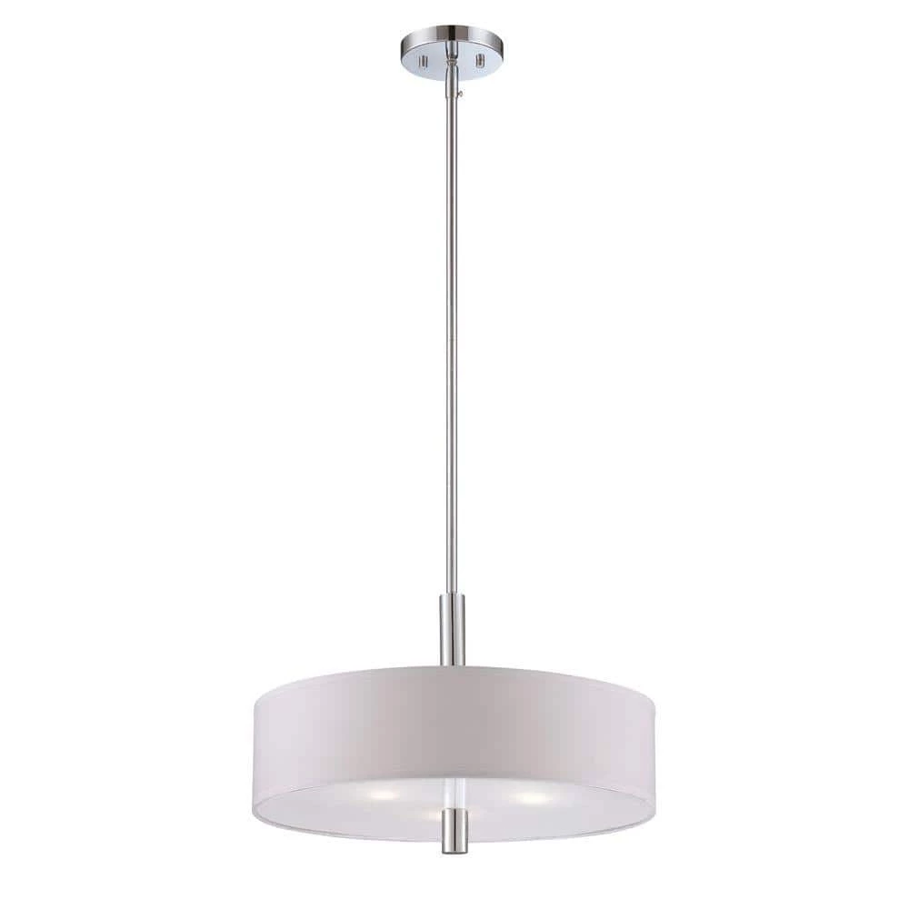 The Cordova Collection comes in Chrome with White Fabric glass. This Contemporary Cordova Pendant will complement the decor in any room of your home. Made with solid steel construction to look great and last for years to come.