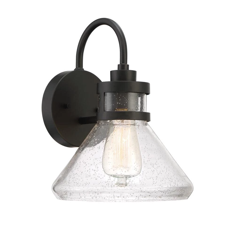 Creslee outdoor wall lights are designed to enhance any exterior decor with a clean look. This outdoor wall lantern features a simple design with an oil rubbed bronze finish. The clear, seedy glass shade highlights the vintage style bulb and creates a pattern of light when lit. This wall lantern is perfect for entryways, porches, patios, front doors, garage doors, common outside areas.