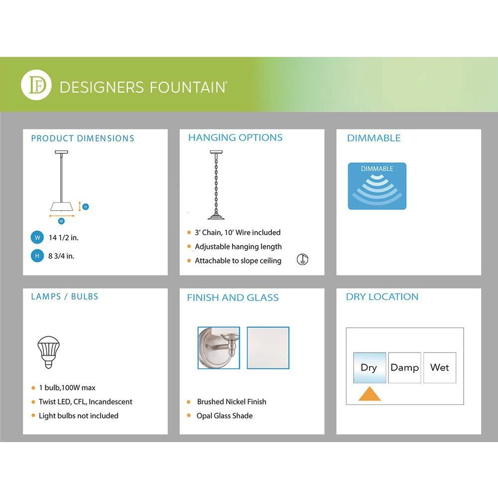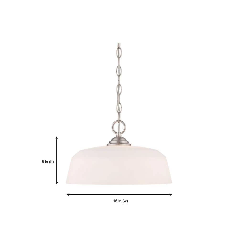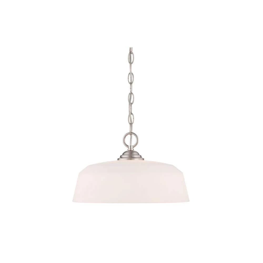 Darcy down pendants features a clean design with sleek lines and a softly molded opal glass shade, adding a touch of sophistication and modern elegance. These fixtures are built with a protective brushed nickel finish over a steel construction to look great and last for years to come. They come with all the hardware you need for easy installation.