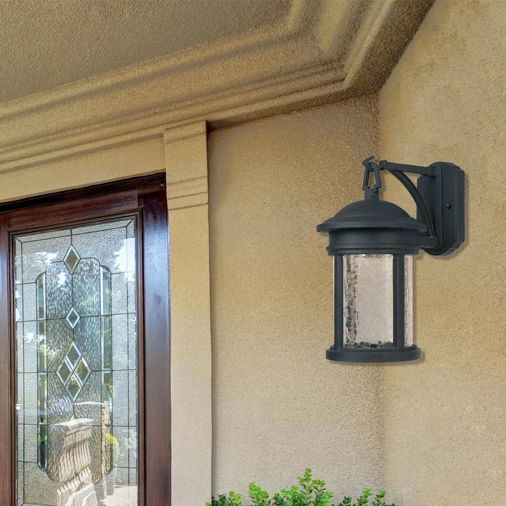 Eagle outdoor lanterns are both stylish and energy efficient. They feature a simple, elegant design with a bold arm and sharp detailing that complements the decor of any home. The clear crackle glass works with the finish and detailing to provide a classic look from the fixture and a warm glow from the light. The oil rubbed bronze finish is treated to prevent pitting, tarnishing, corrosion, and discoloration. The sturdy, weather resistant cast aluminum construction and waterproof seal protect the lantern from harsh outdoor elements to ensure the long life of the fixture. These outdoor lanterns install easily and deliver welcoming, safe and reliable exterior lighting. Because they are LED powered, they use less than 1/3 the electricity of common lanterns, and there are never any bulbs to replace.