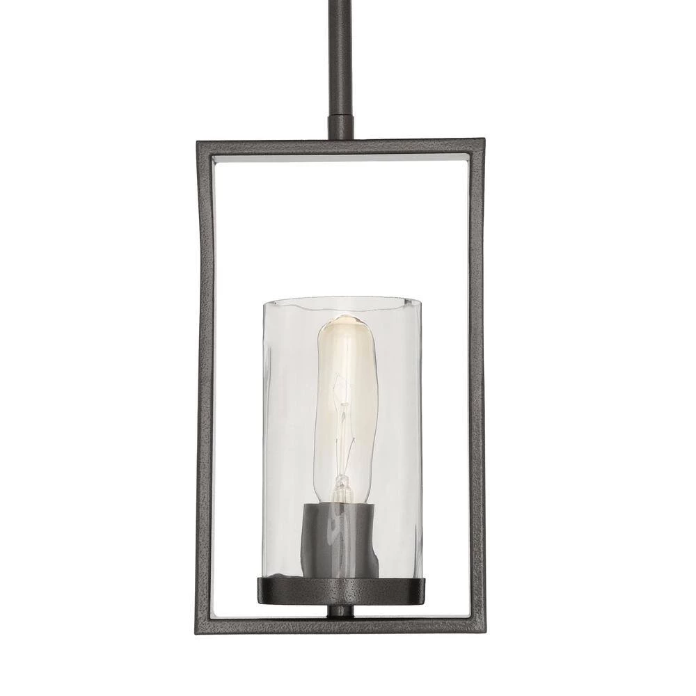 The Elements Collection comes in Charcoal with Rain glass. This Transitional Elements Mini Pendant will complement the decor in any room of your home. Made with solid steel construction to look great and last for years to come.