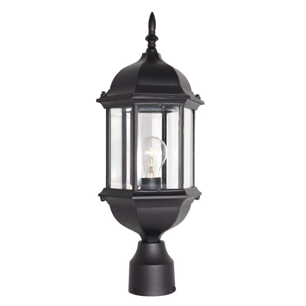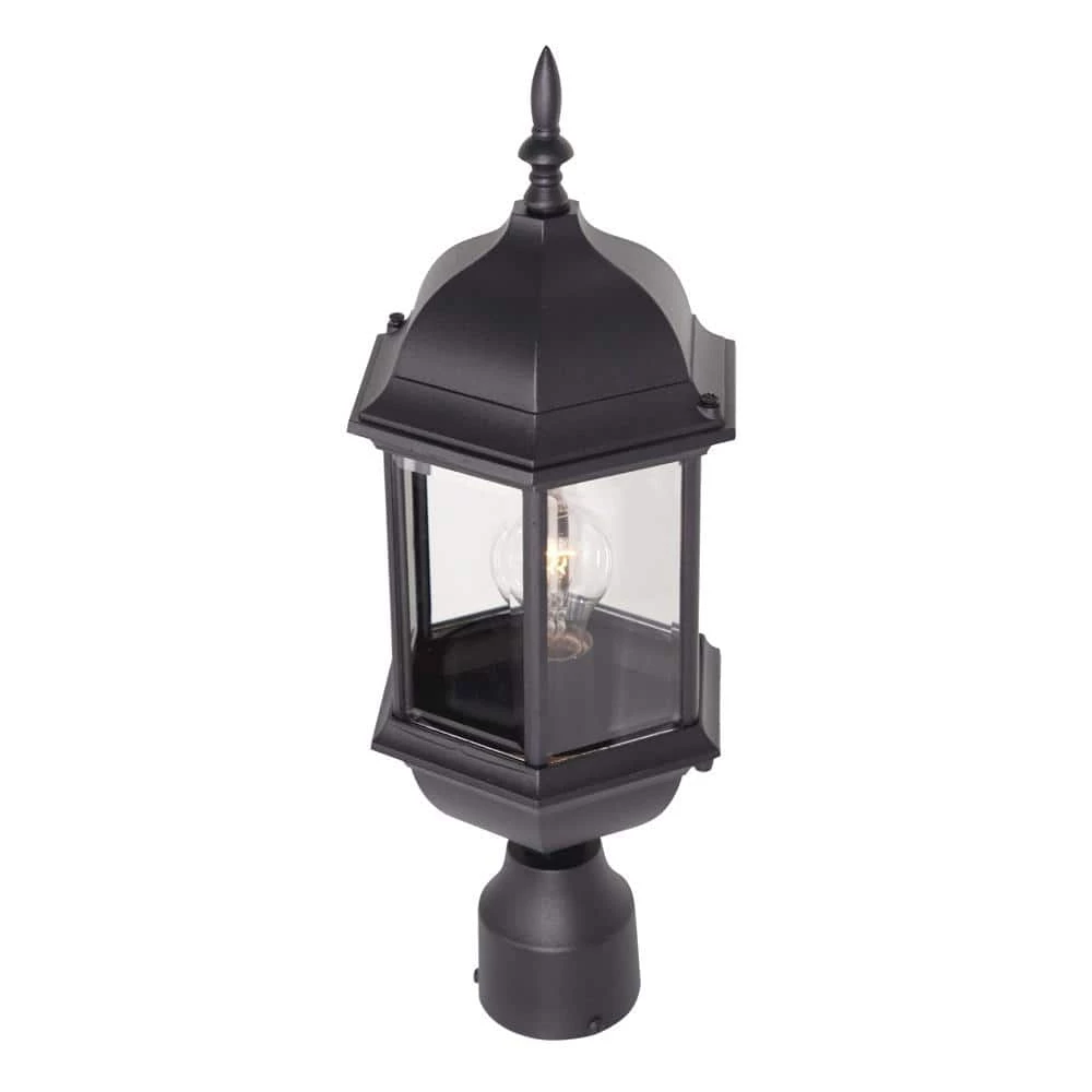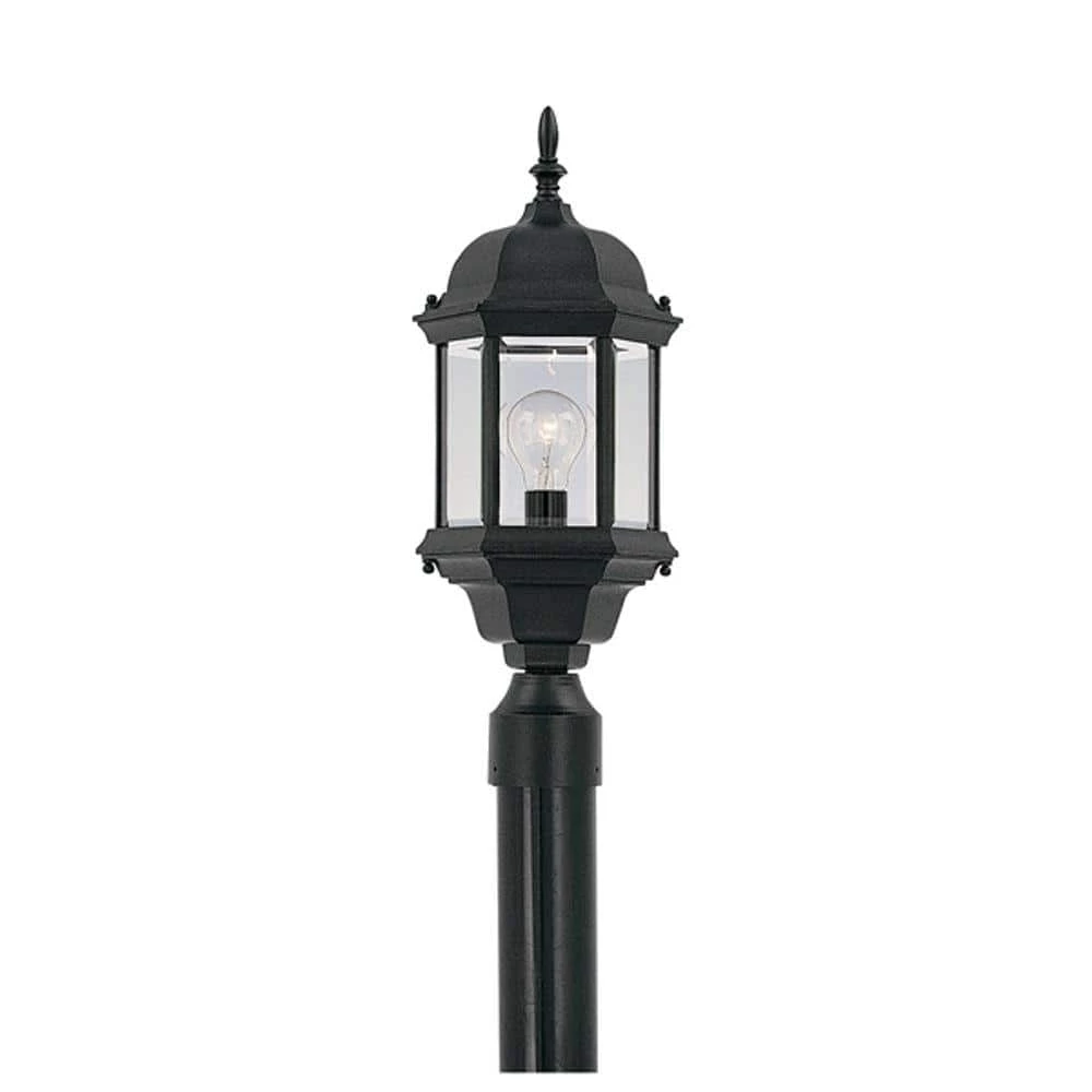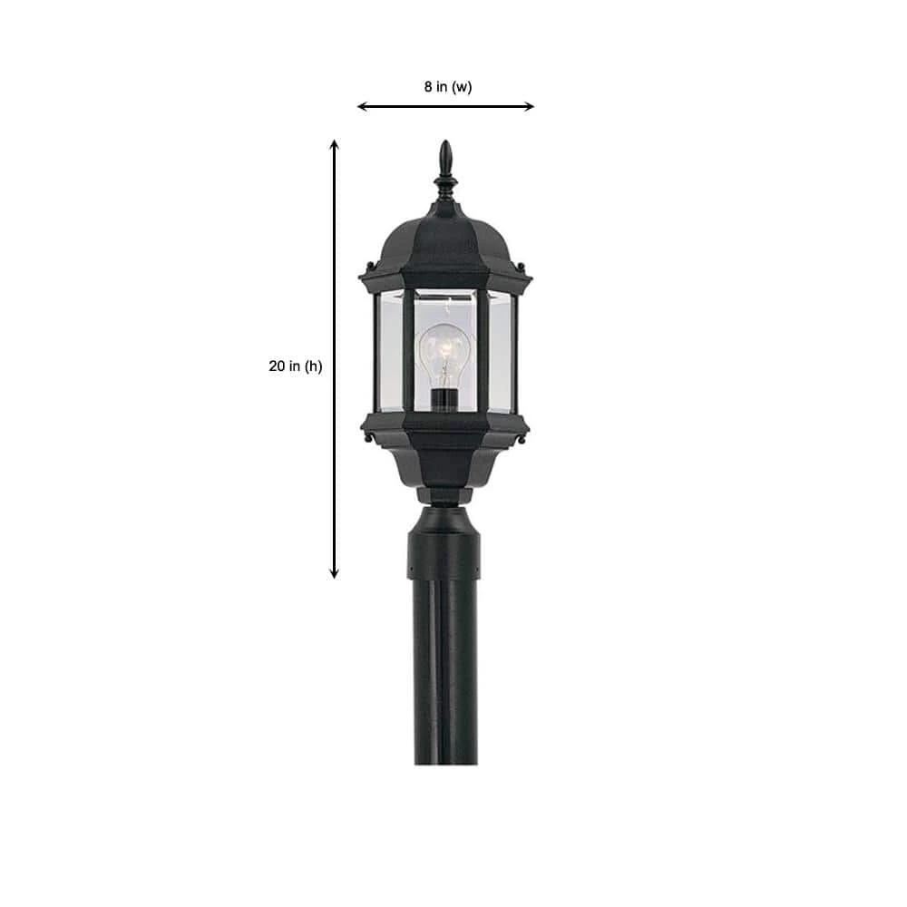 Erving outdoor post lanterns feature an elegant 6 sided design with a bold arm and exquisite detailing that complements the decor of any home. The clear glass works with the finish and detailing to provide a classic look from the fixture and a warm glow from the light. The solid black finish is treated to prevent pitting, tarnishing, corrosion, and discoloration. The sturdy, weather resistant cast aluminum construction and waterproof seal protect the lantern from harsh outdoor elements to ensure the long life of the fixture. These outdoor post lanterns install easily and deliver welcoming, safe and reliable exterior lighting.