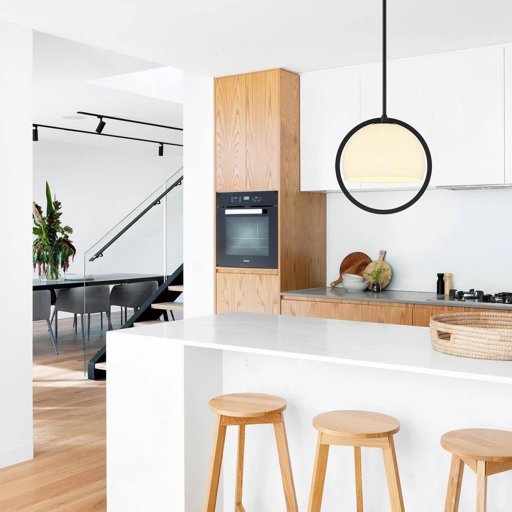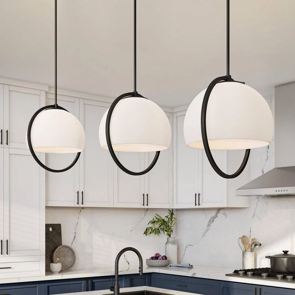 Eterna pendants evoke a Mid-Century Modern styling, with their nested globe and hoop construction. Available in a bold Matte Black or warm Brushed Gold finish, these pendants are sure to be the focus of conversation and enjoyment for-years to come. Made from durable steel for-years of enjoyment and illumination.