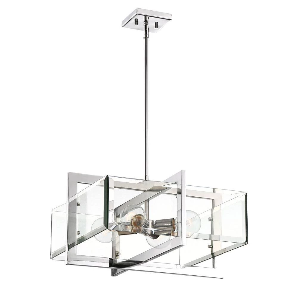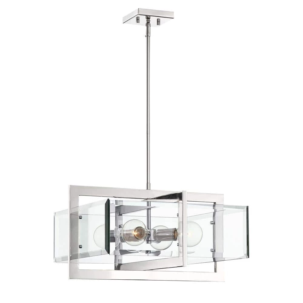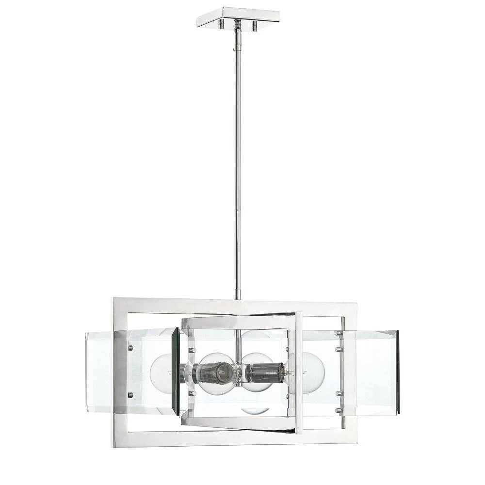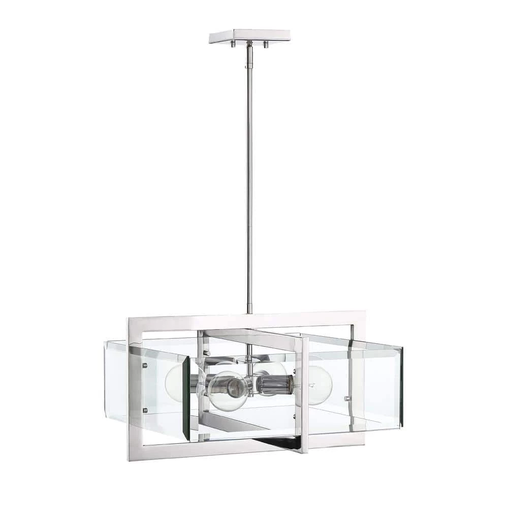 A simple frame finished in Polished Nickel suspending clear beveled glass panels. Ethan is a touch retro, a tad vintage, a dash modern and adds a subtle splash of excitement to your space. This hanging pendant is designed to be the star of your room. It’s designed for easy installation in dining and living areas.