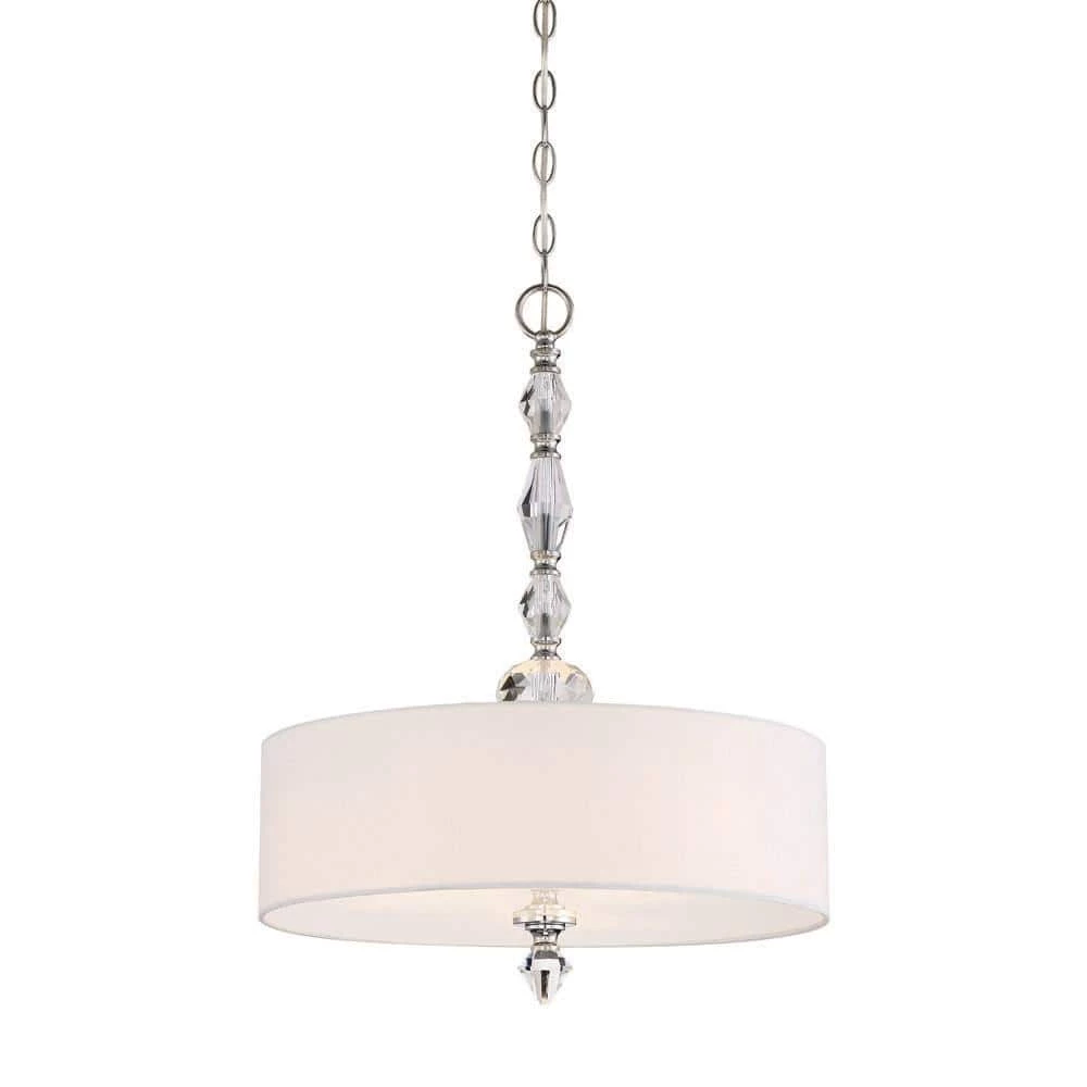 Elegant and refined, exuding a stylish sophistication with timeless appeal. The Evi collection features crystal spheres and a Satin Platinum finish adds a Modern flair. White Fabric shades.