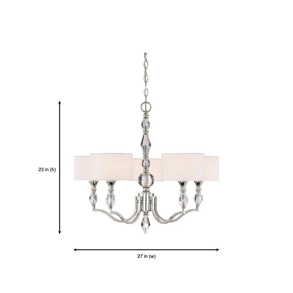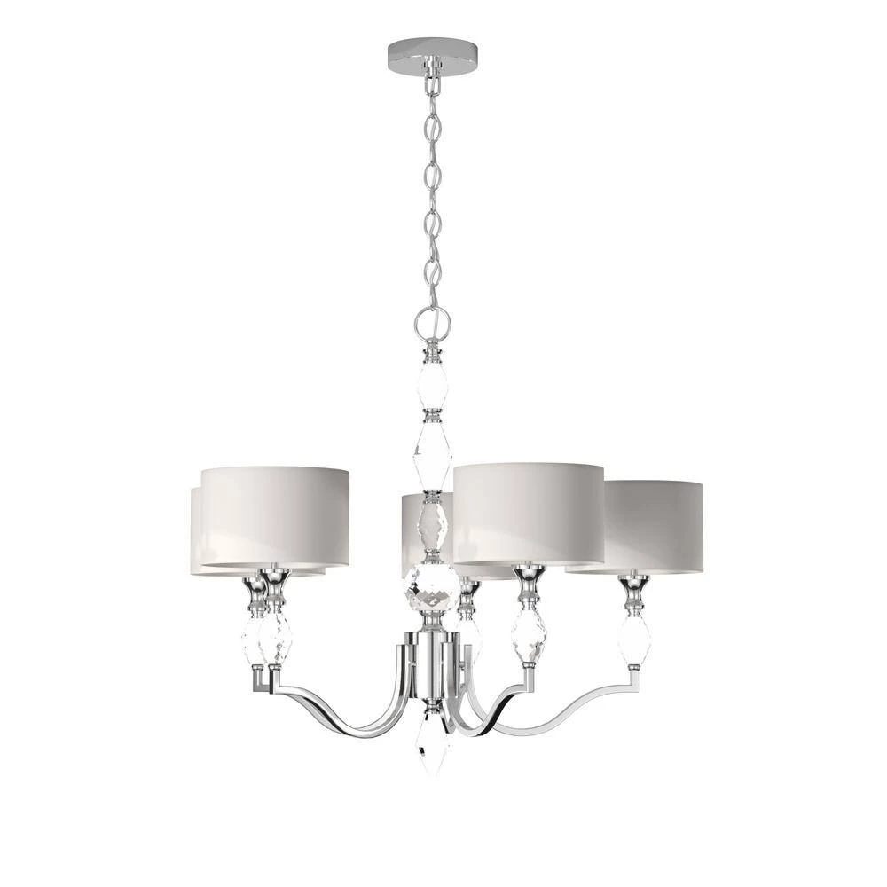 Elegant and refined, exuding a stylish sophistication with timeless appeal. The Evi collection features crystal spheres and a Satin Platinum finish adds a Modern flair. White Fabric Shade.