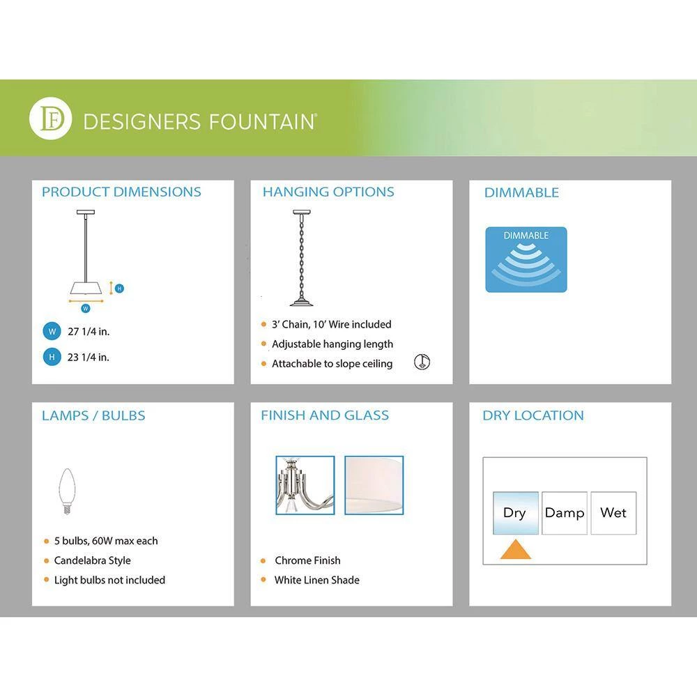 - Requires 5 candelabra based light bulb – 60-Watt or less each (not included)
