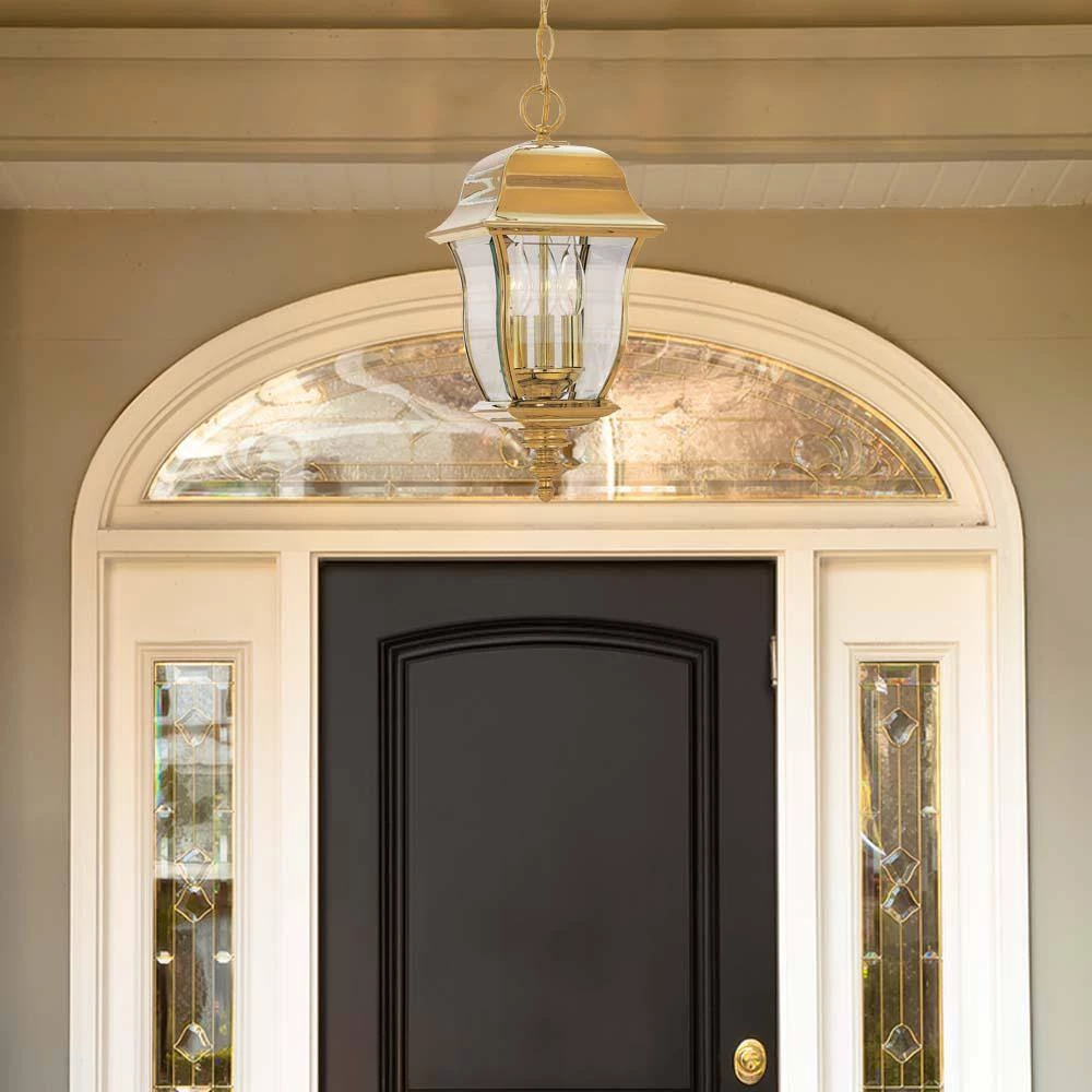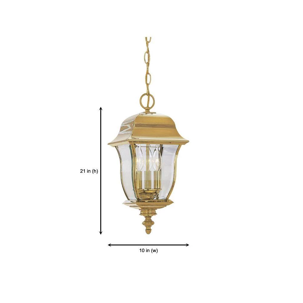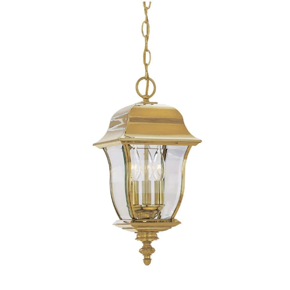 Oak Harbor outdoor hanging lanterns are a modern take on a classic design with a unique, elegant style that complements the exterior decor of any home. The polished brass finish is treated to prevent pitting, tarnishing, corrosion and discoloration. The clear glass works with the sharp lines to provide a clean look from the fixture and warm glow from the light. The sturdy, weather resistant brass and stainless steel construction and waterproof seal protects the lantern from harsh outdoor elements to ensure the long life of the fixture. These outdoor lanterns install easily and deliver welcoming, safe and reliable exterior lighting.