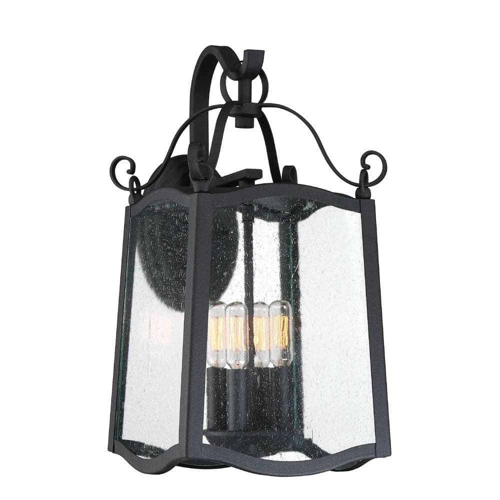 The traditional clean lines and delicate curves of the Glenwood collection offer a comfort that only home can provide. Finished in black with clear seedy glass and an open cage design to allow for focus on its unique subtle detailing. This outdoor wall mounted lantern is designed to showcase the front of your home, provide security and welcome your guests. It’s built to last in outdoor environments.