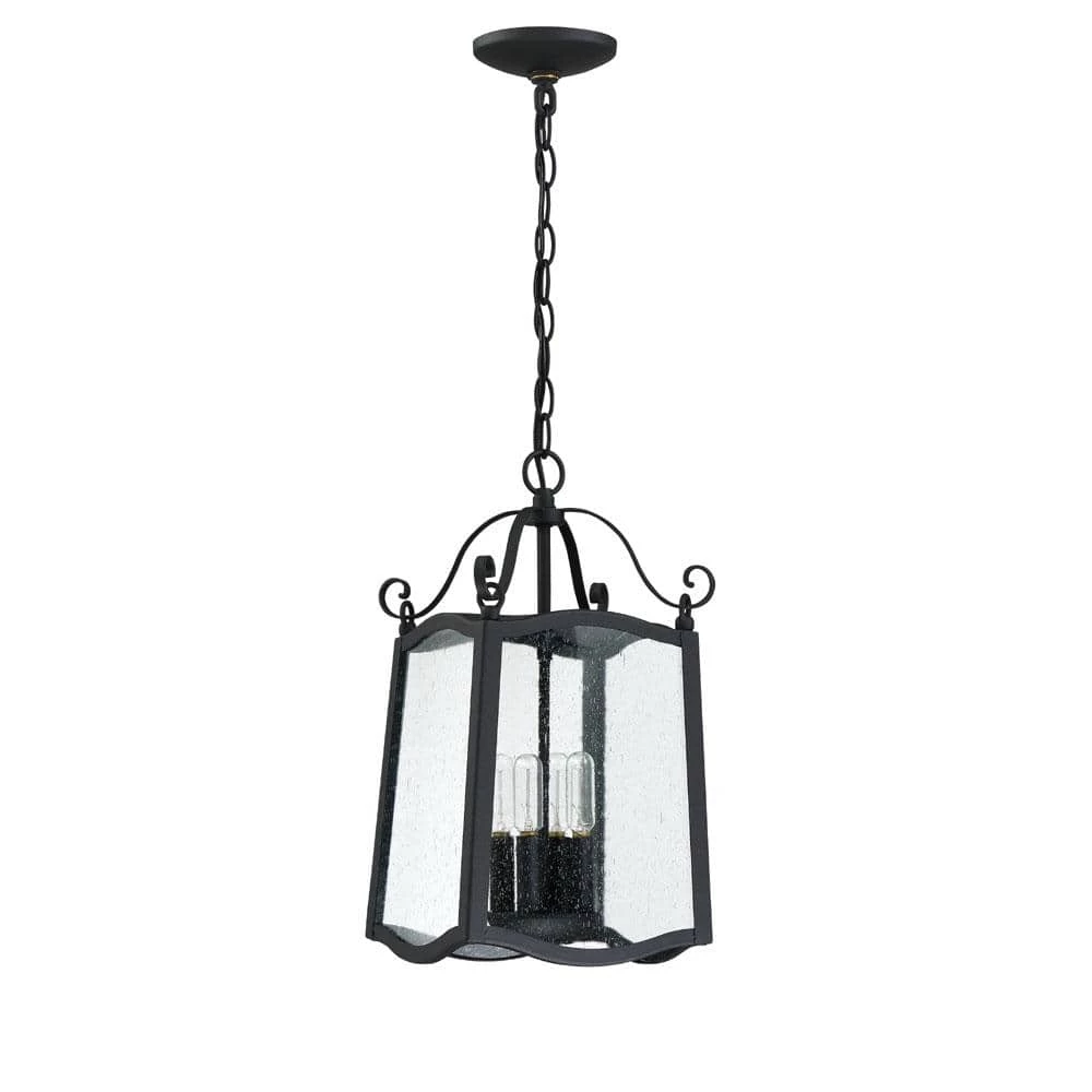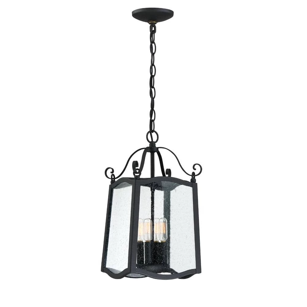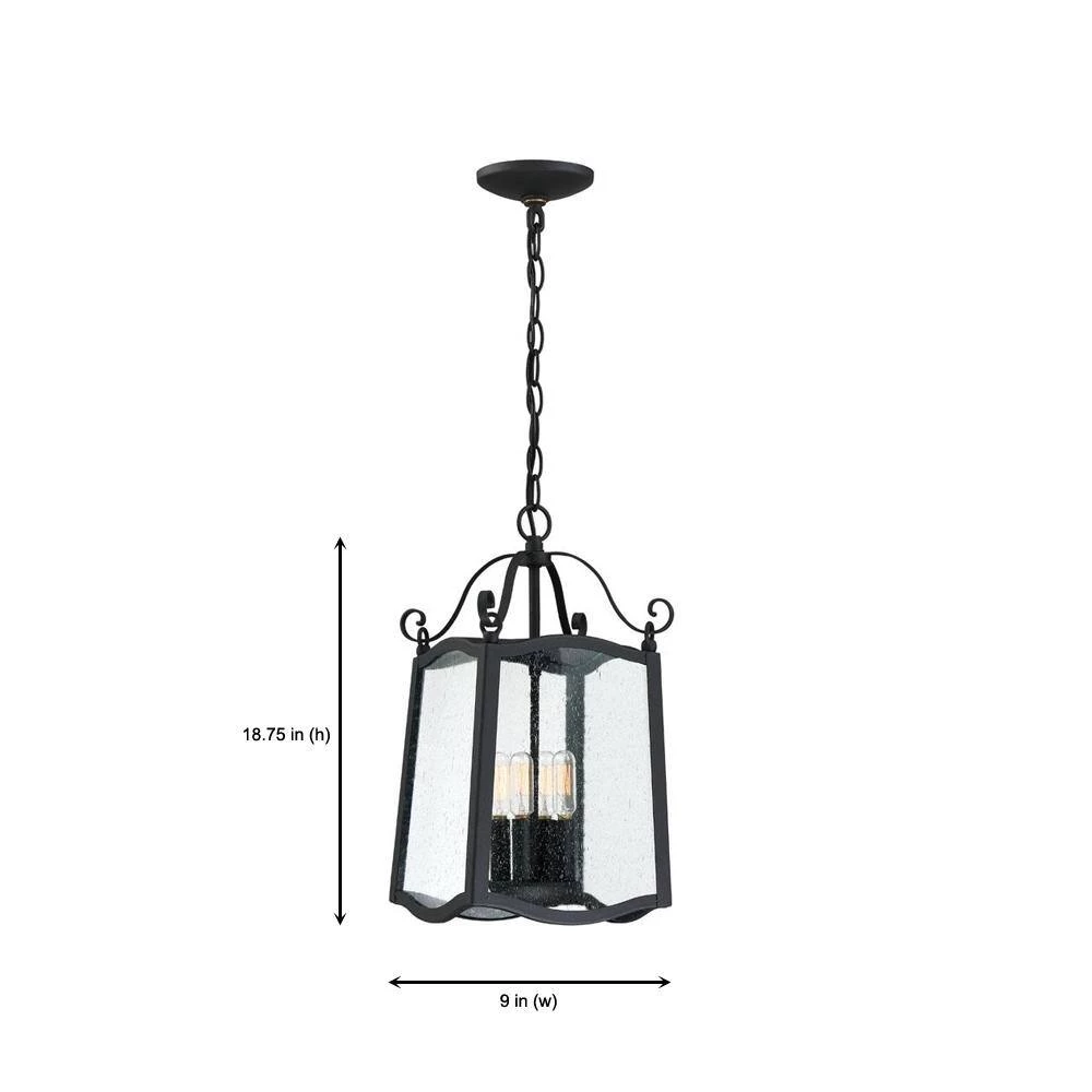 The traditional clean lines and delicate curves of the Glenwood collection offer a comfort that only home can provide. Finished in black with clear seedy glass and an open cage design to allow for focus on its unique subtle detailing. This outdoor hanging lantern is designed to showcase the front of your home and welcome your guests. It’s built to last in outdoor environments.