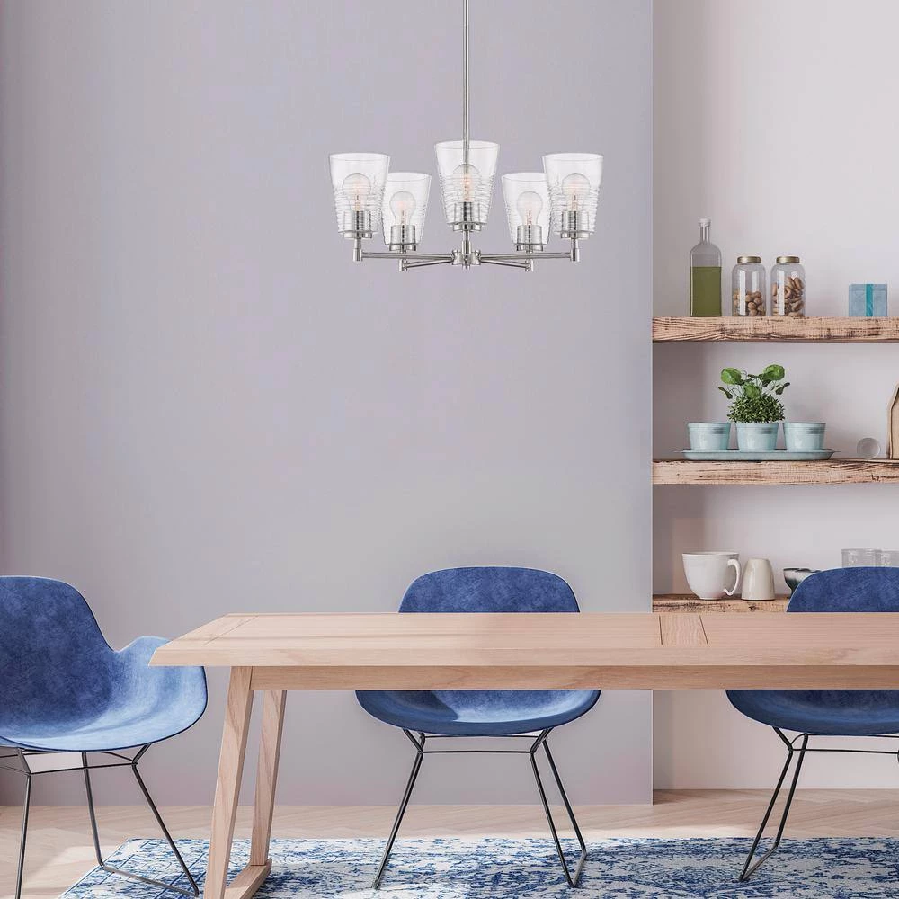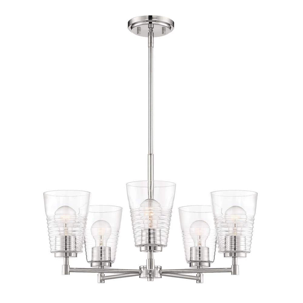 - Polished nickel 5 light chandelier with clear blown ripple glass is part of the Ingo collection