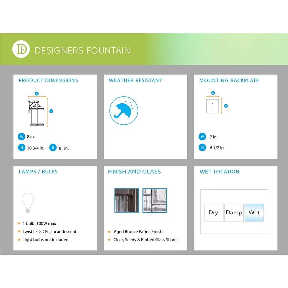 The Kingsley Collection comes in Aged Bronze Patina with Clear Seedy and Ribbed glass. This Transitional Kingsley 8 in. Wall Lantern will complement the decor in any room of your home. Made with solid steel construction to look great and last for years to come.