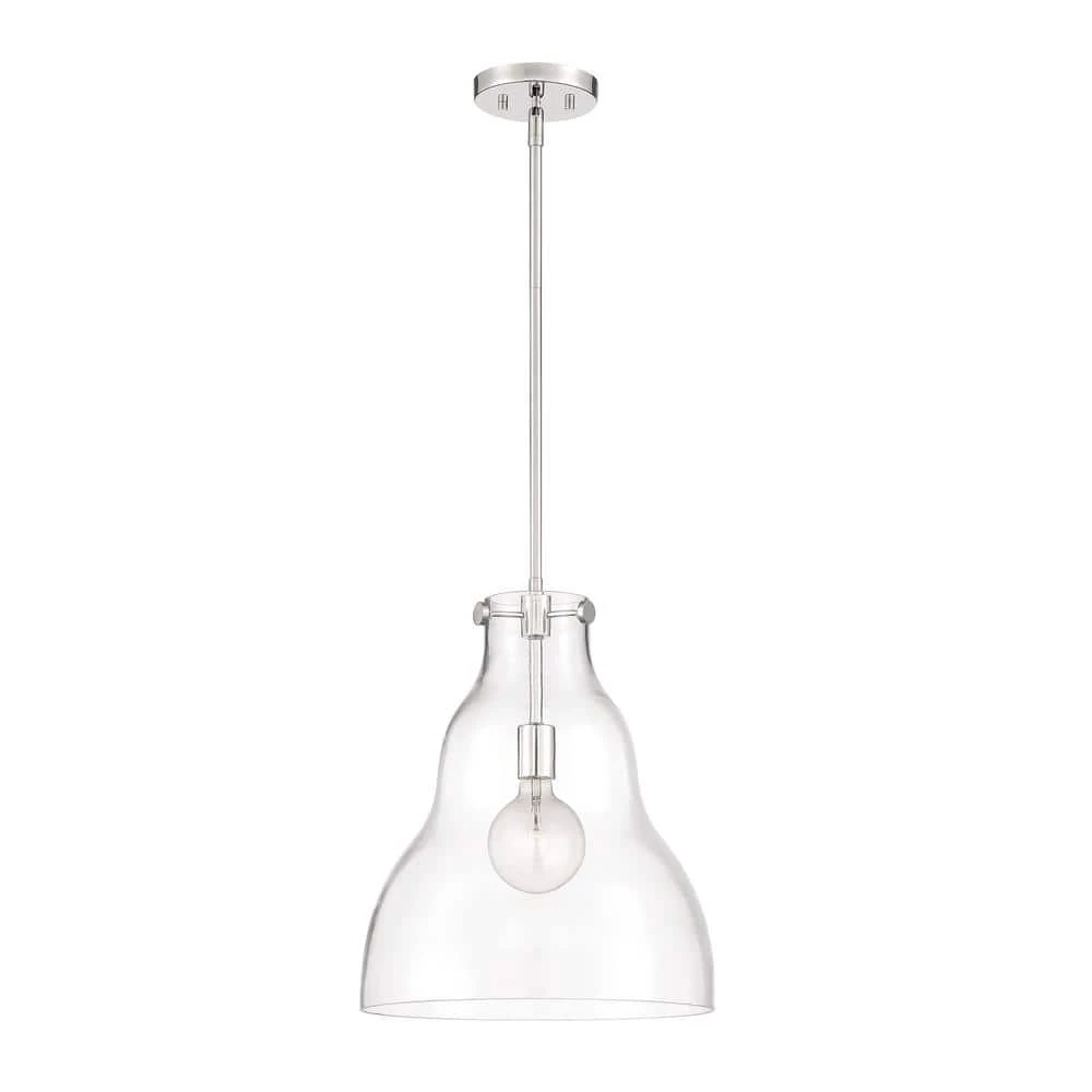 - Polished nickel 1 light pendant with clear glass shade is part of the Lakeview collection