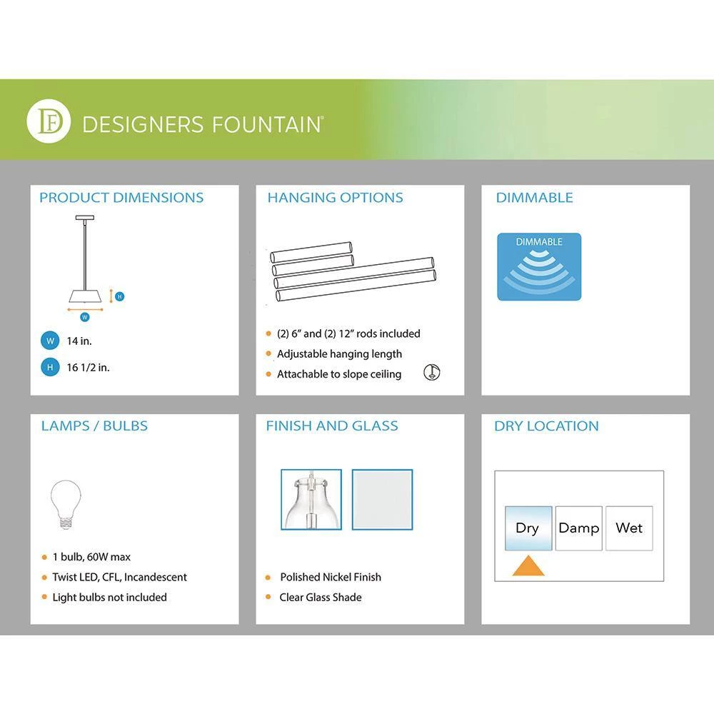 - Fixture dimension: 14 in. W, 16.5 in. H