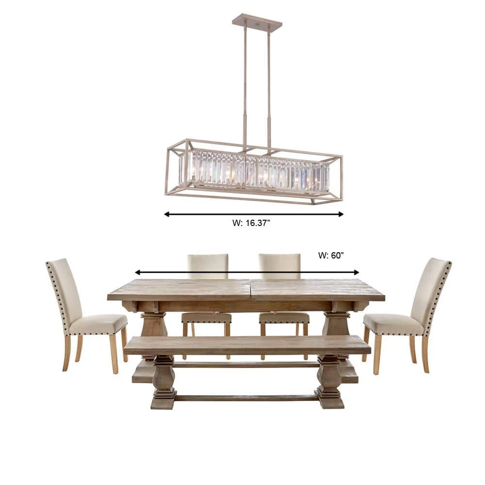 The Linares Collection comes in Aged Platinum with Crystal Prisms glass. This Contemporary Linares 4 Light Linear Chandelier will complement the decor in any room of your home. Made with solid steel construction to look great and last for years to come.