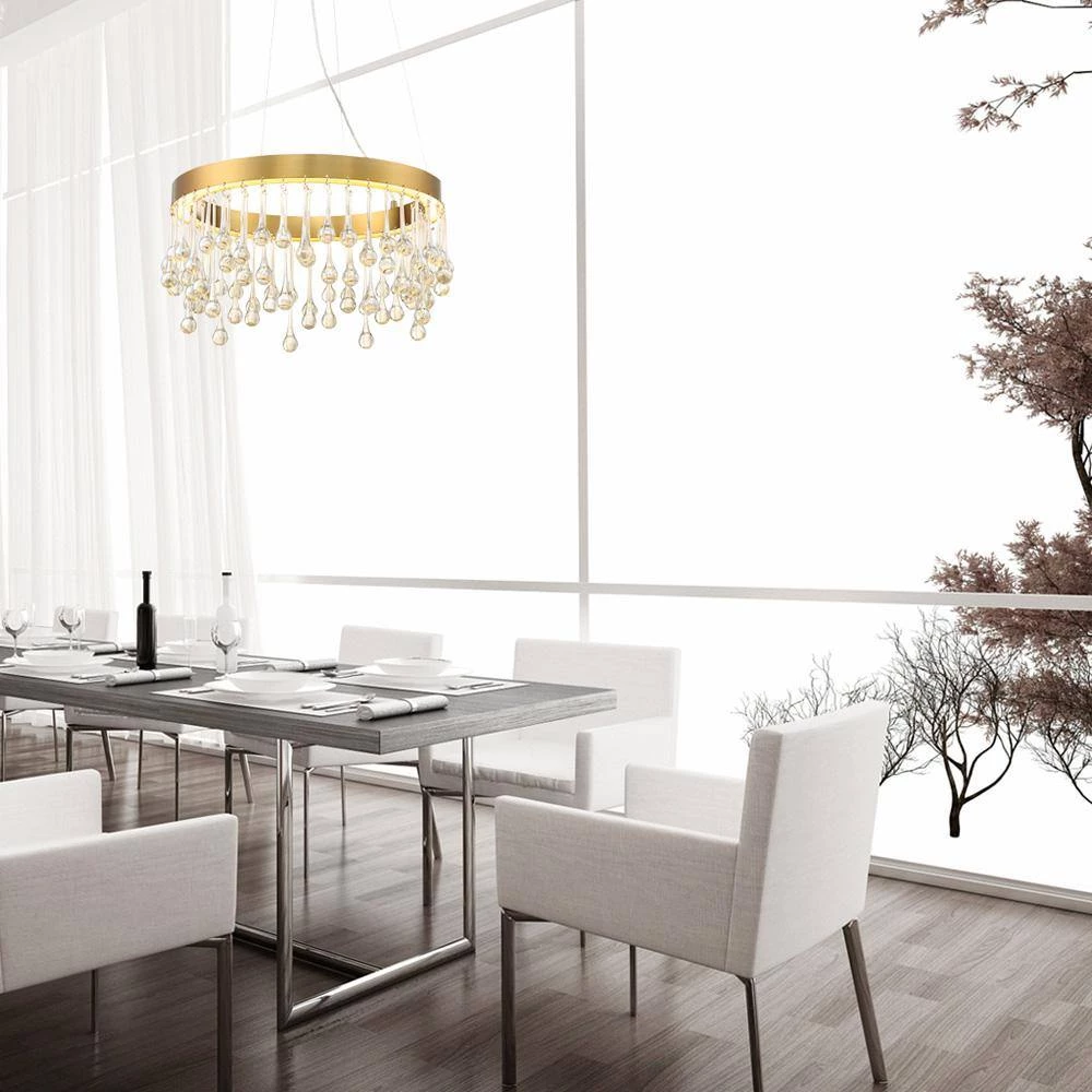 The Lucienne Collection comes in Luxor Gold with Topaz glass. This Contemporary Lucienne 18 in. Pendant will complement the decor in any room of your home. Made with solid steel construction to look great and last for years to come.