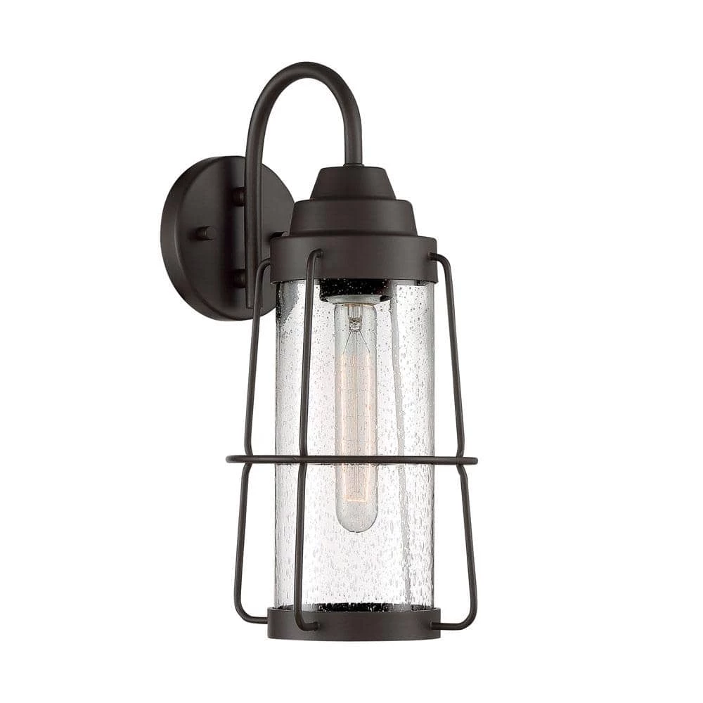 Featuring a new take on a Coastal classic, the Marin conveys New England charm. The Rustique finish, clear Seedy Glass shade and timeless cage design add vintage appeal. It’s easy to install and requires 1 screw-based light bulb, ideal for filament style.
