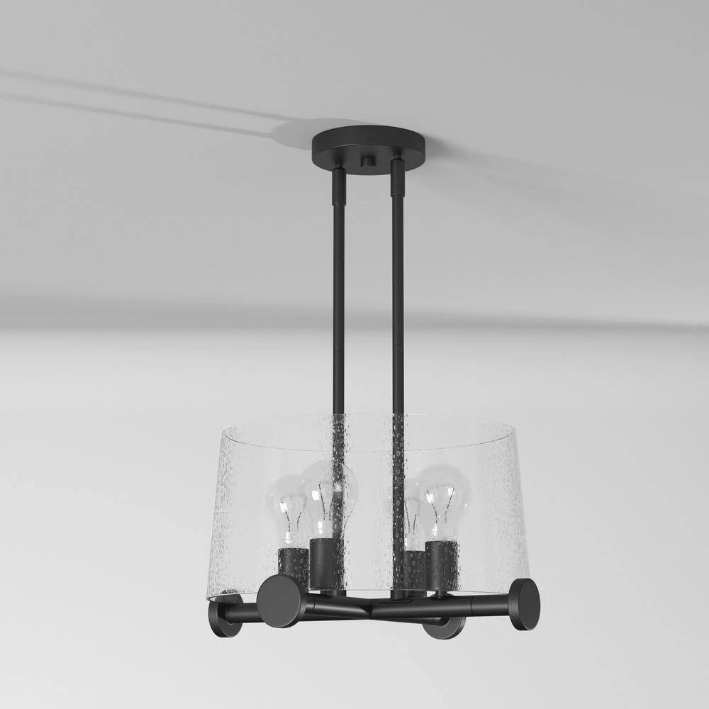 Hip and Airy, Matteson is at home in an Urban Loft or a Modern Farmhouse. The tapered clear seedy glass shades sit effortlessly between the bold knurled knobs giving sophisticated credit to both form and function. This fixture is quality built to last for years to come.